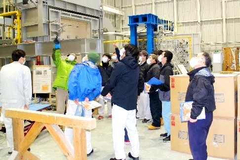 その後の見学では、耐火炉や木材強度試験機をご覧いただきましたが、木材の強度やクレーン操作について質問をいただくなど、終始、熱心に見学いただきました。