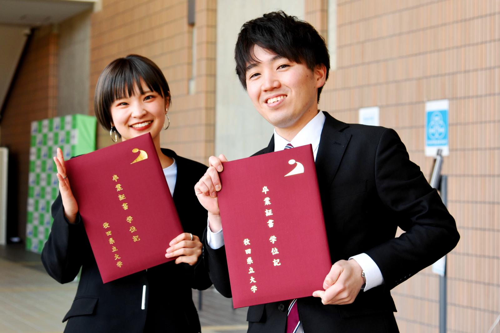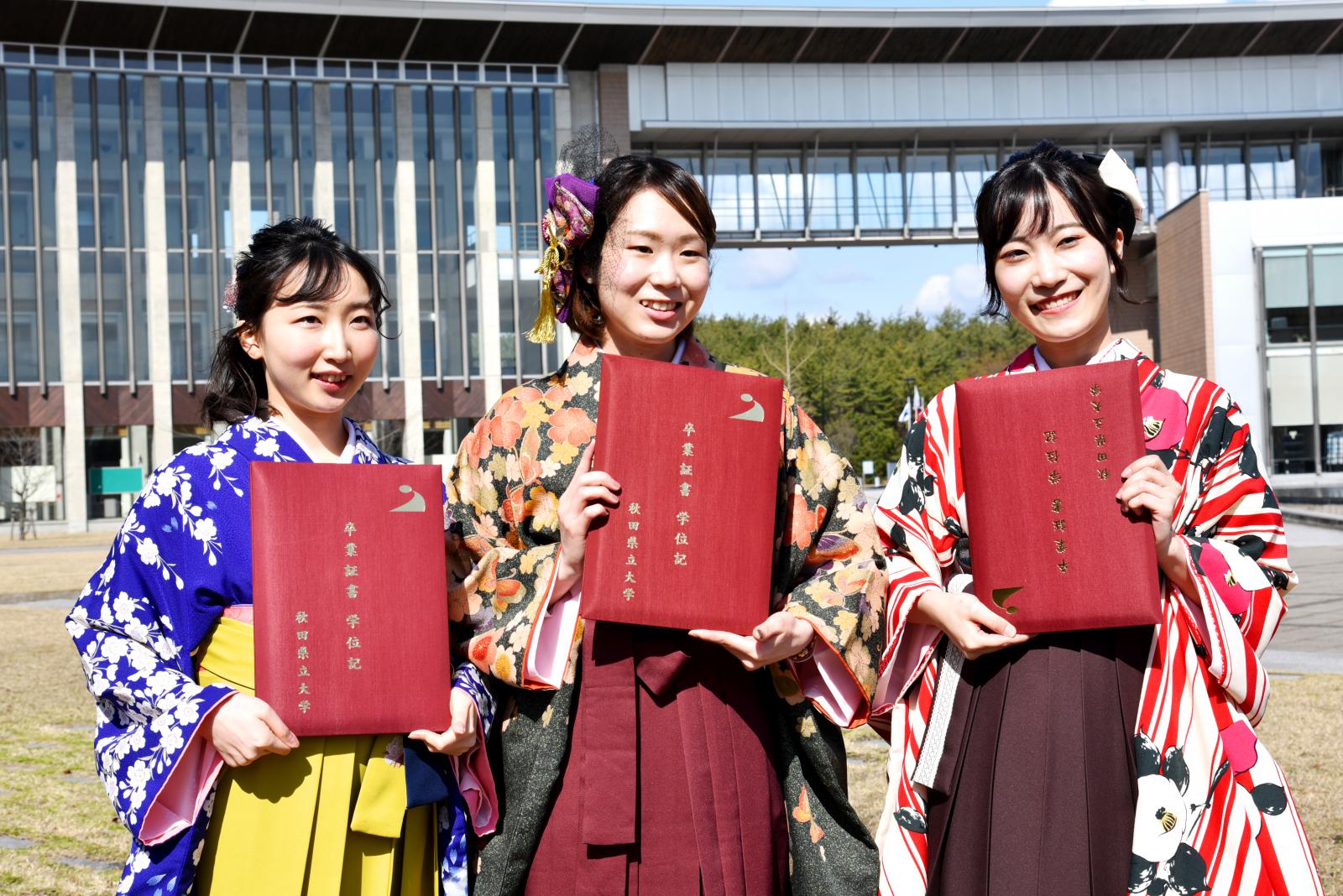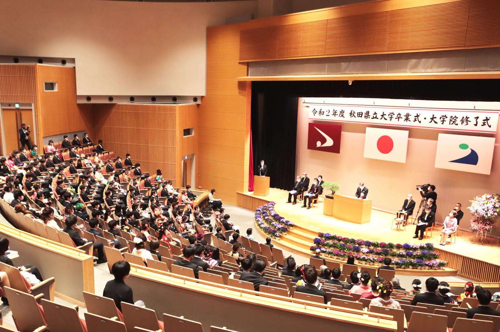 3月23日、令和2年度秋田県立大学卒業式・大学院修了式が執り行われ、学部生378名、大学院生80名が卒業・修了し本学を巣立ちました。