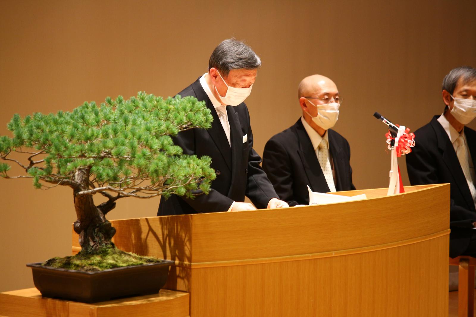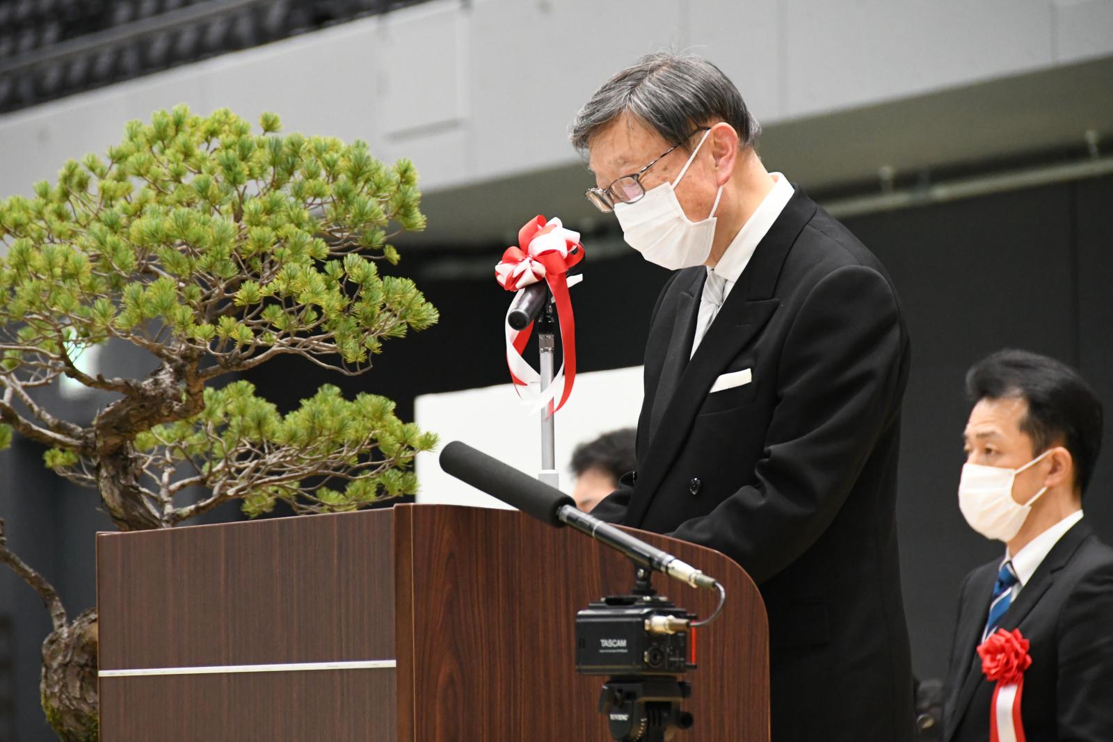 小林学長は、感染拡大によりキャンパスにも大きな影響が出た1年を振り返り、「これから皆さんが働く社会はSociety 5.0に代表されるように、IoTで全ての人とモノがつながり、イノベーションによりビジネスの世界が大きく変わることが予想され、より創造性の高い仕事が求められます。複眼的でしなやかな発想を駆使して、社会で活躍して欲しい」と述べ、学生たちを激励しました。