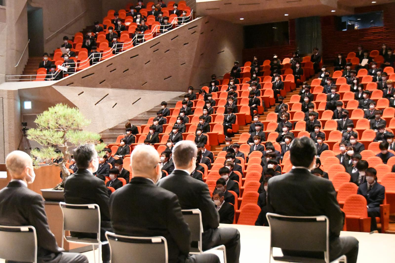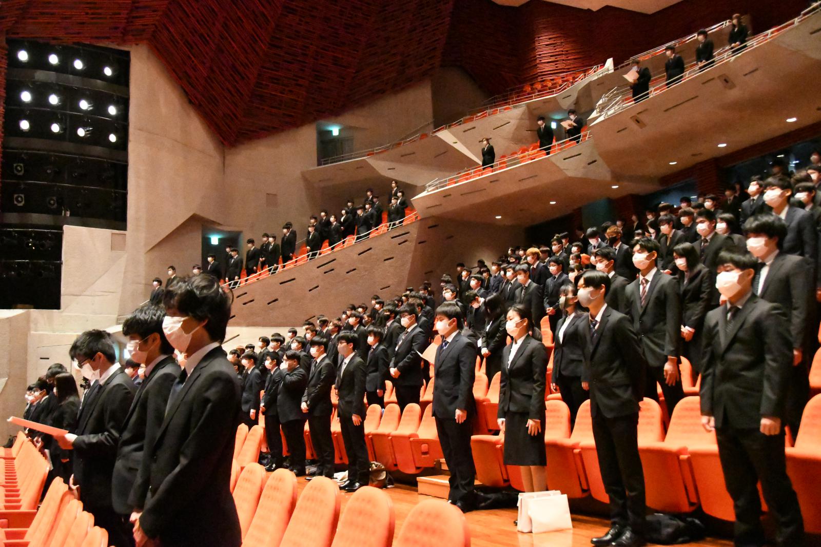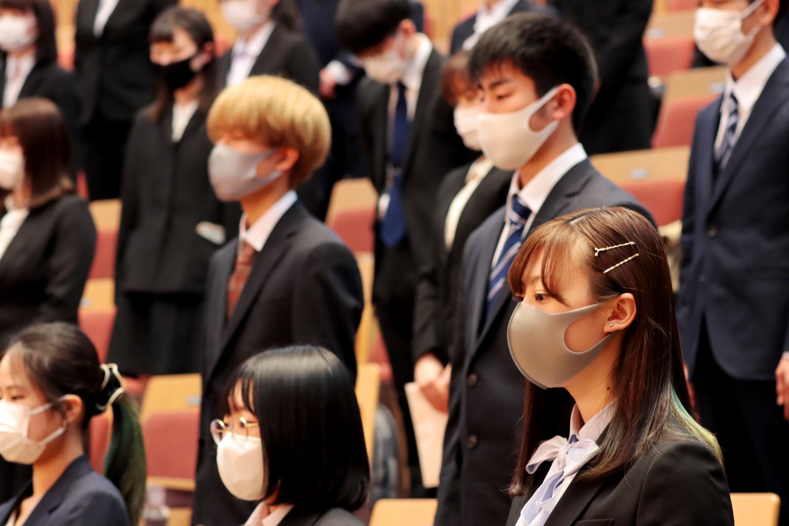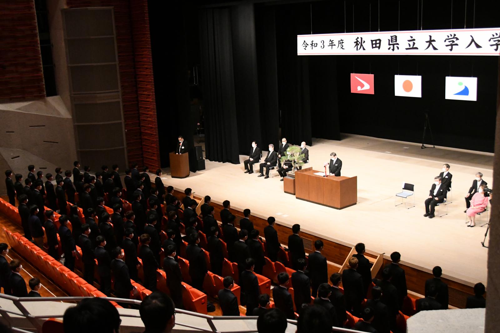 また新入生を代表して、生物資源科学部の三浦匠さん(秋田県/大曲高校出身)、システム科学技術学部の佐藤翔瑠さん(秋田県/横手清陵高校出身)は「常に未来の大きな目標を見据えて勉学に励み、自信と誇りを持って自らを向上させ、先輩たちとともに無限の可能性を切りひらいていきます」と力強く宣誓しました。
