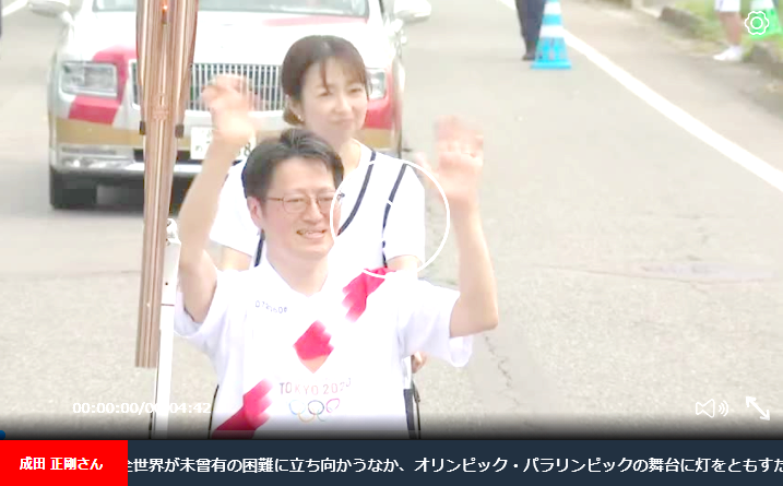 本学職員が東京2020オリンピックの聖火リレーを走行しました!! このたび、附属図書館の成田正剛さん、地域連携チームの阿部剛紀さんが、東京2020オリンピック競技大会の聖火リレーランナー(秋田県)に選出され、成田さんは、6月8日(火)に大仙市、阿部さんは6月9日(水)大潟村で、その大役を立派に果たしました。成田さんと阿部さんは、沿道に集まった観客からの熱い声援と拍手が沸き起こると、はじけるような笑顔で大きく手を振って応えました。 成田 正剛さん 成田正剛さんの聖火リレーの様子は、こちらから↓ 【NHK 聖火リレーライブストリーミング特設サイト】 阿部 剛紀さん 阿部剛紀さんの聖火リレーの様子は、こちらから↓ 【NHK 聖火リレーライブストリーミング特設サイト】