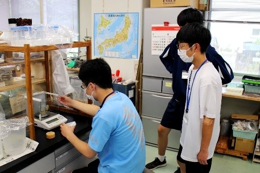 令和3年7月27日(火)と28日(水)の2日間、秋田県立能代高等学校の2年生3名が木材高度加工研究所でインターシップを体験をしました。初日は山内秀文教授、二日目は栗本康司教授が講師となり、両日とも安藤大将助教がサポートしました。