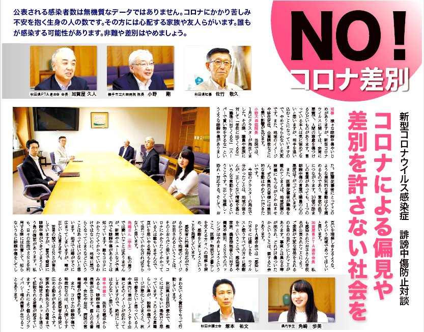 本学は、秋田県の「新型コロナウイルス感染症に伴う誹謗中傷防止共同宣言」の趣旨に賛同しています。