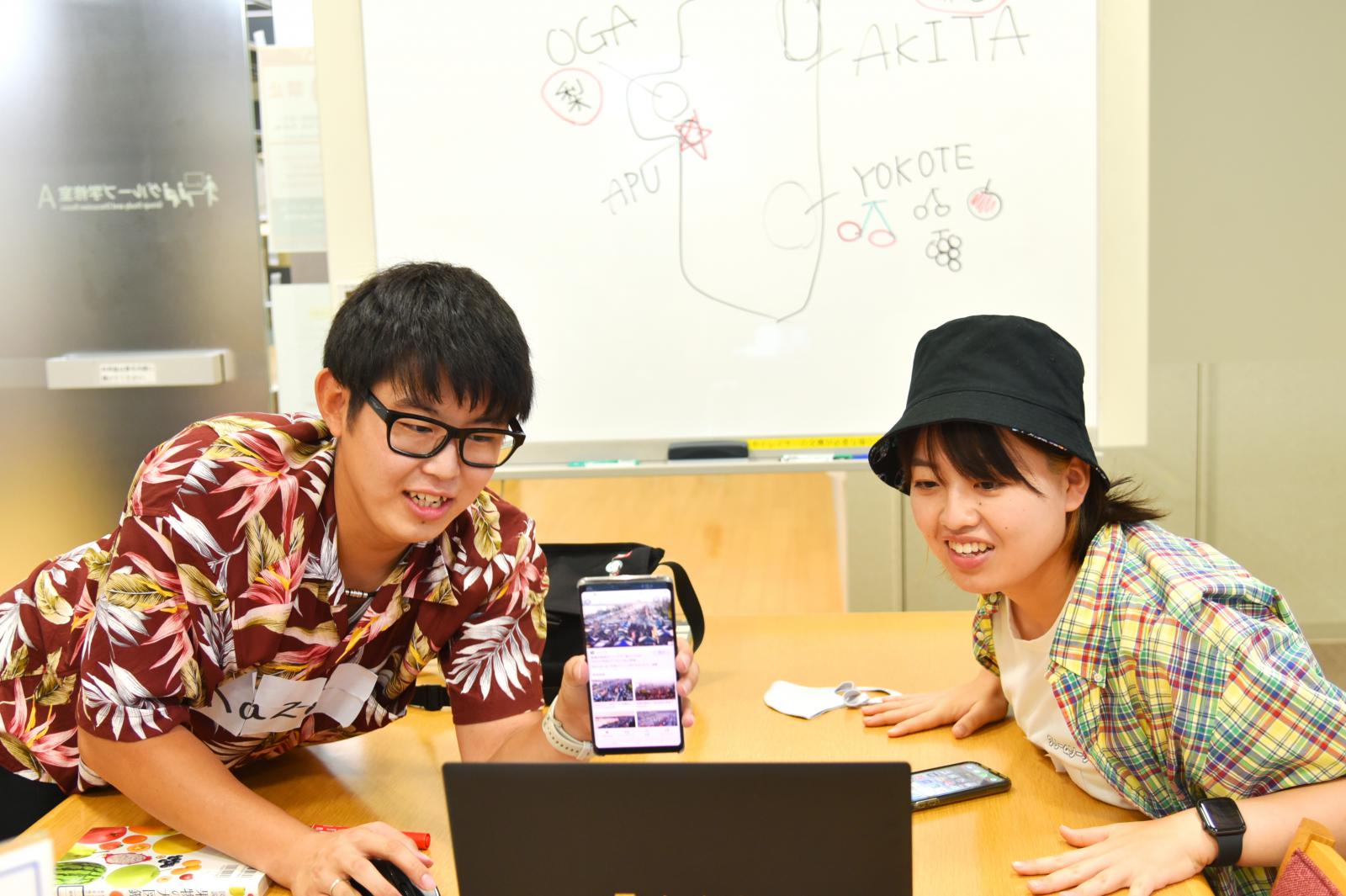 秋田県立大学と台湾国立宜蘭大学は、2016年からは交互に短期留学して交流を深めてきました。今回のオンライン交流では、2年前に宜蘭大学を訪問した学生が、台湾の学生と画面越しの再会を喜びあう姿もありました。