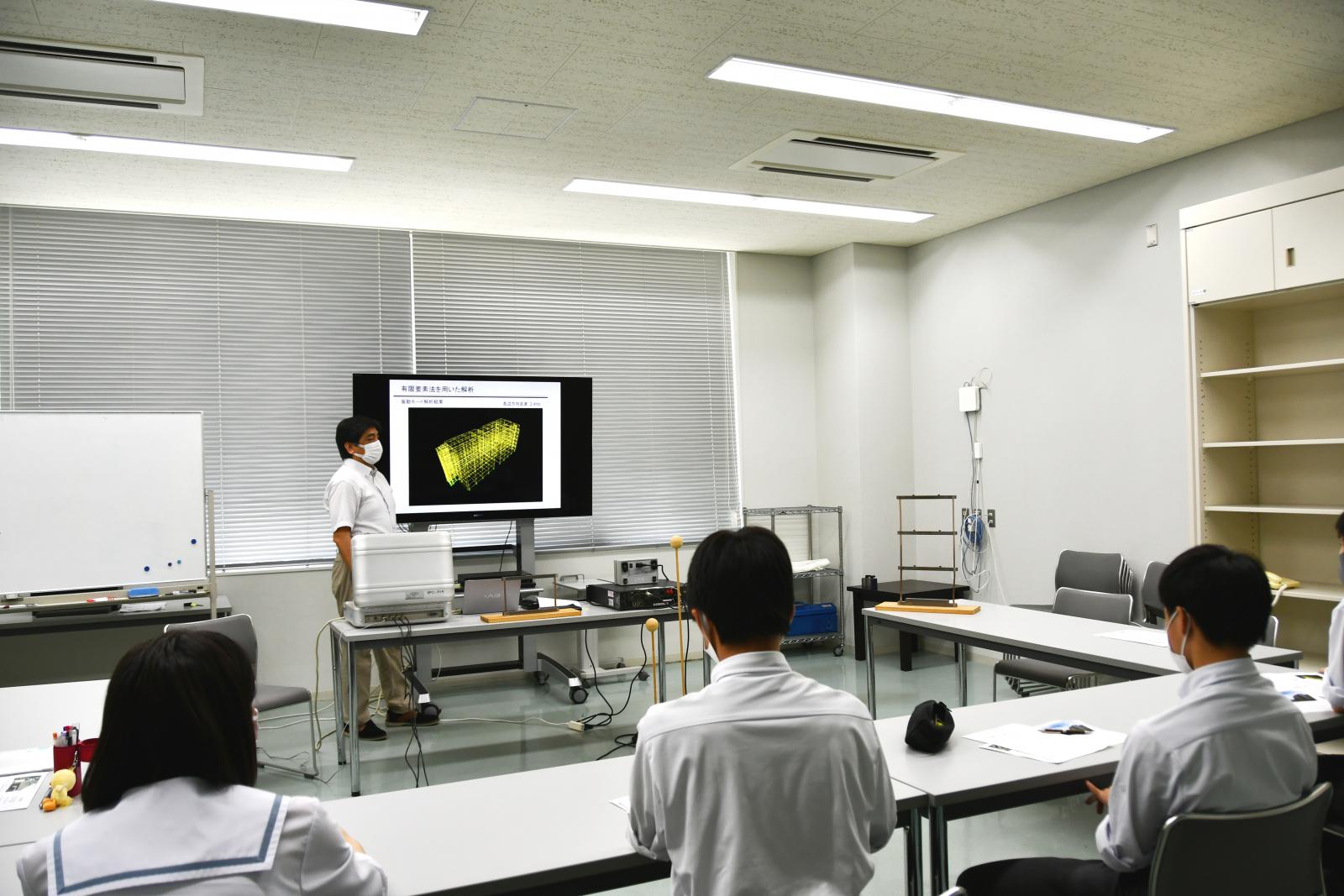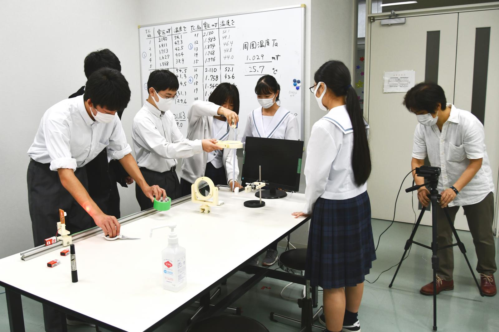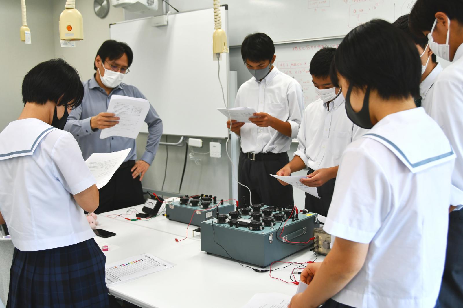 今回は、教員や学生の指導のもと、本学で行われている最先端の多彩な研究(13講座)に触れていただきました。生徒たちは、高校の授業とは一味違う専門的な授業に、真剣な眼差しで聞き入り、実験にも熱心に取り組みました。