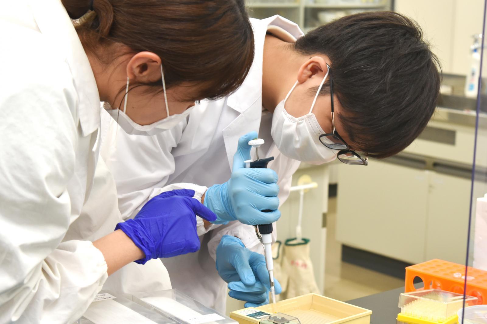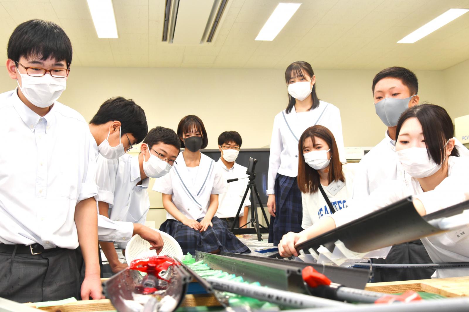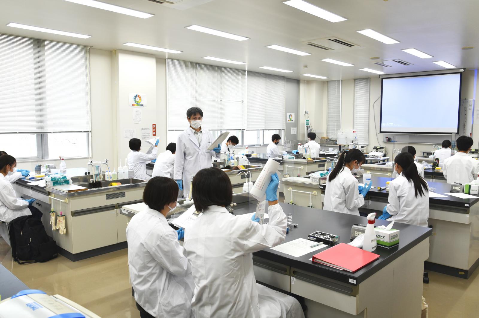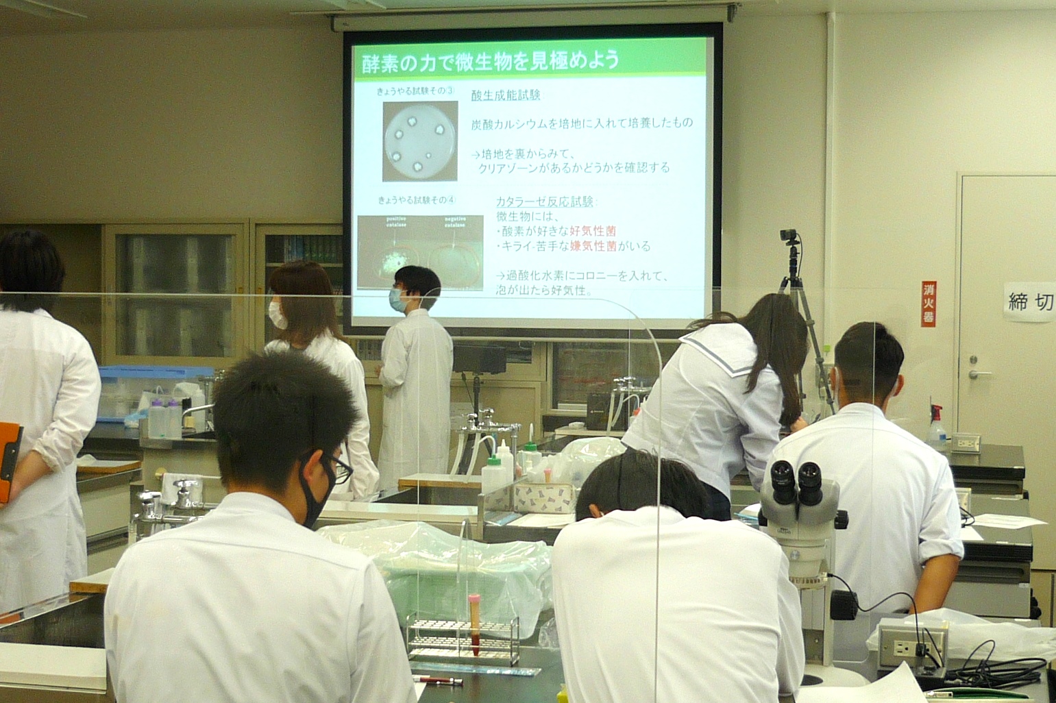 今回は、教員や学生の指導のもと、本学で行われている最先端の多彩な研究(13講座)に触れていただきました。生徒たちは、高校の授業とは一味違う専門的な授業に、真剣な眼差しで聞き入り、実験にも熱心に取り組みました。