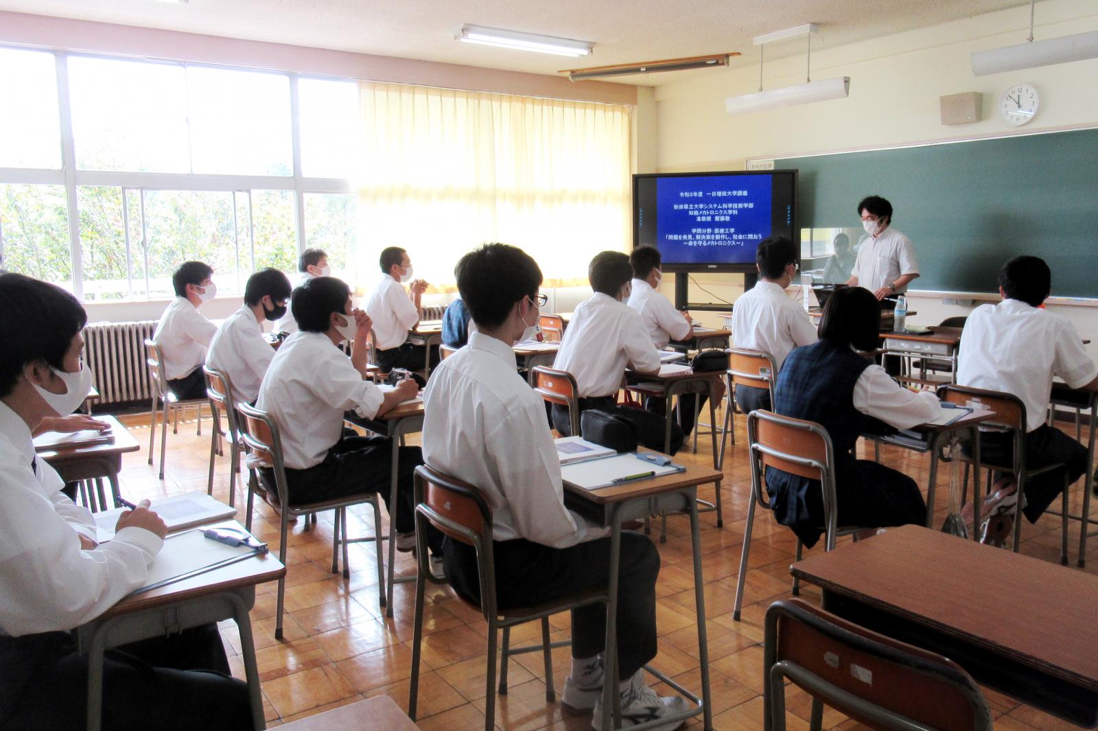 9月17日(金)、 秋田県立増田高校において、本学システム科学技術学部の齋藤 敬 准教授(知能メカトロニクス学科)及び、生物資源科学部の櫻井 健二 准教授(生物生産科学科)による出前講座「一日増田大学」が開催されました。増田高校の生徒さんは、知りたい学問、興味のある分野の授業を選択し、メモをとりながら、熱心に聞いたり質問したりしていました。今回の出前授業が、高校生の自らの視野と将来への可能性を拡げていく一助になれば幸いです。