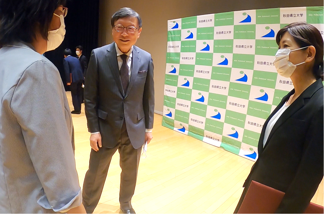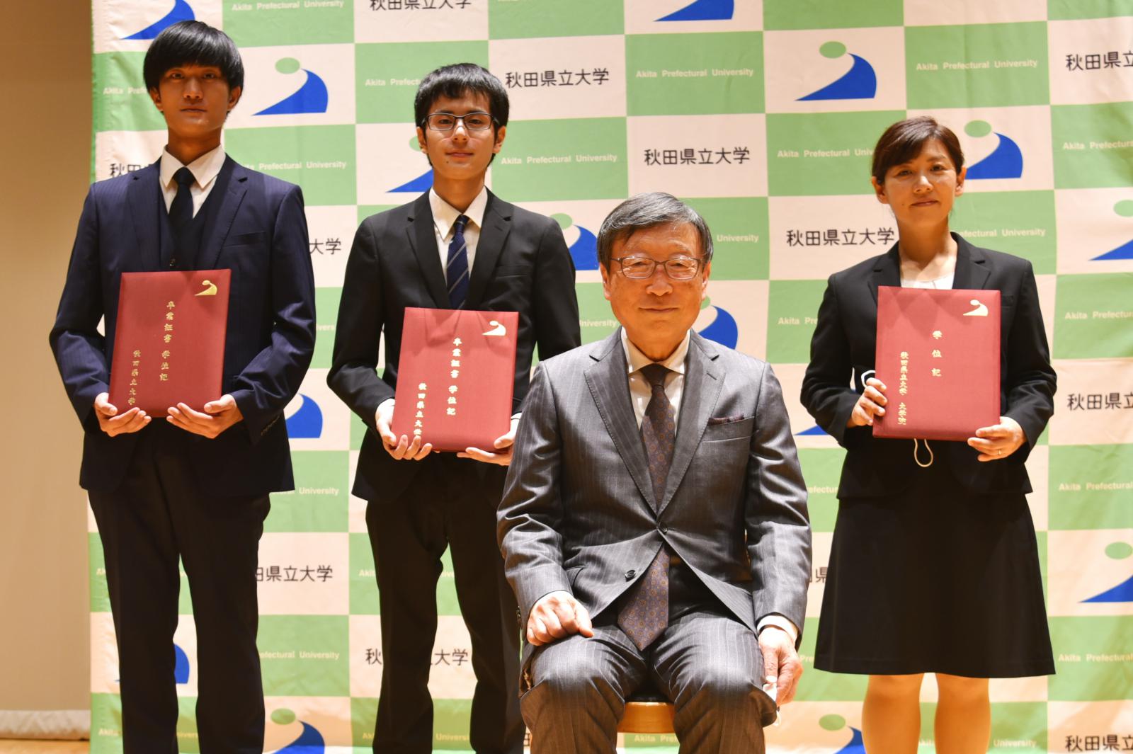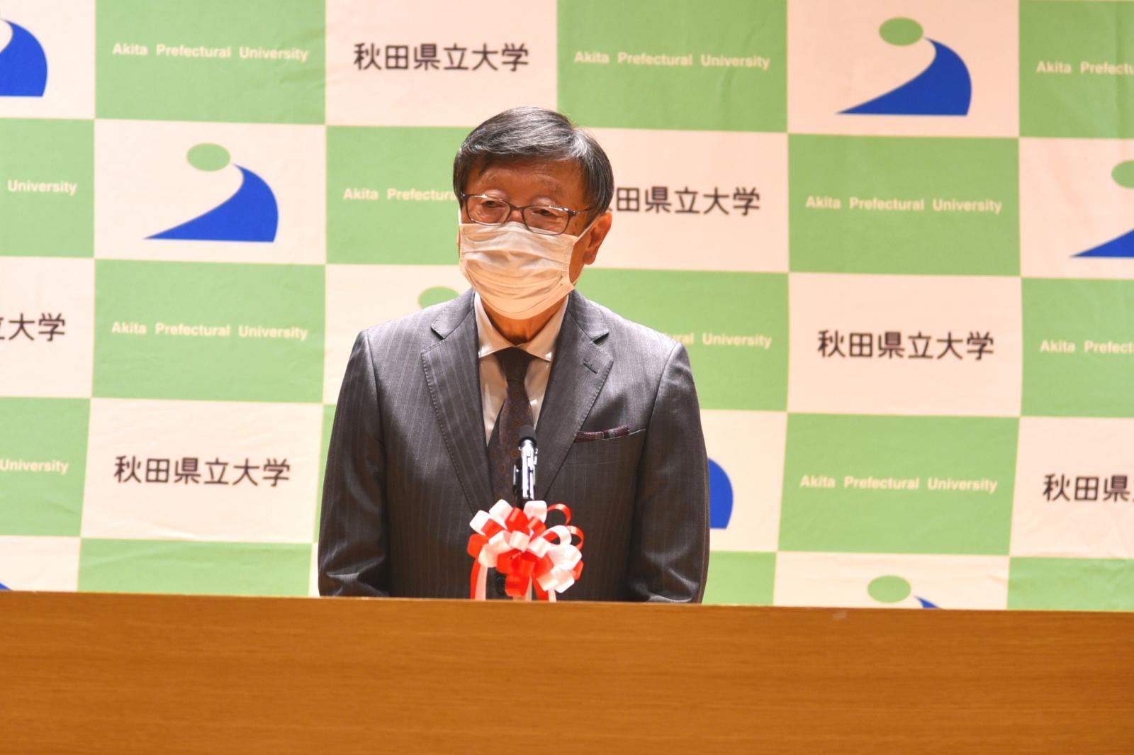 9月27日、秋田キャンパスにおいて令和3年度前期秋田県立大学卒業式・大学院修了式並びに学位授与式を執り行い、学部生3名、大学院生2名が卒業・修了しました。小林学長は告辞の中で「これから先の長い人生では、人との出会いが大事になってくる。相手の良いところを見つけてつきあっていくことが大切だ。」と卒業生らを激励しました。