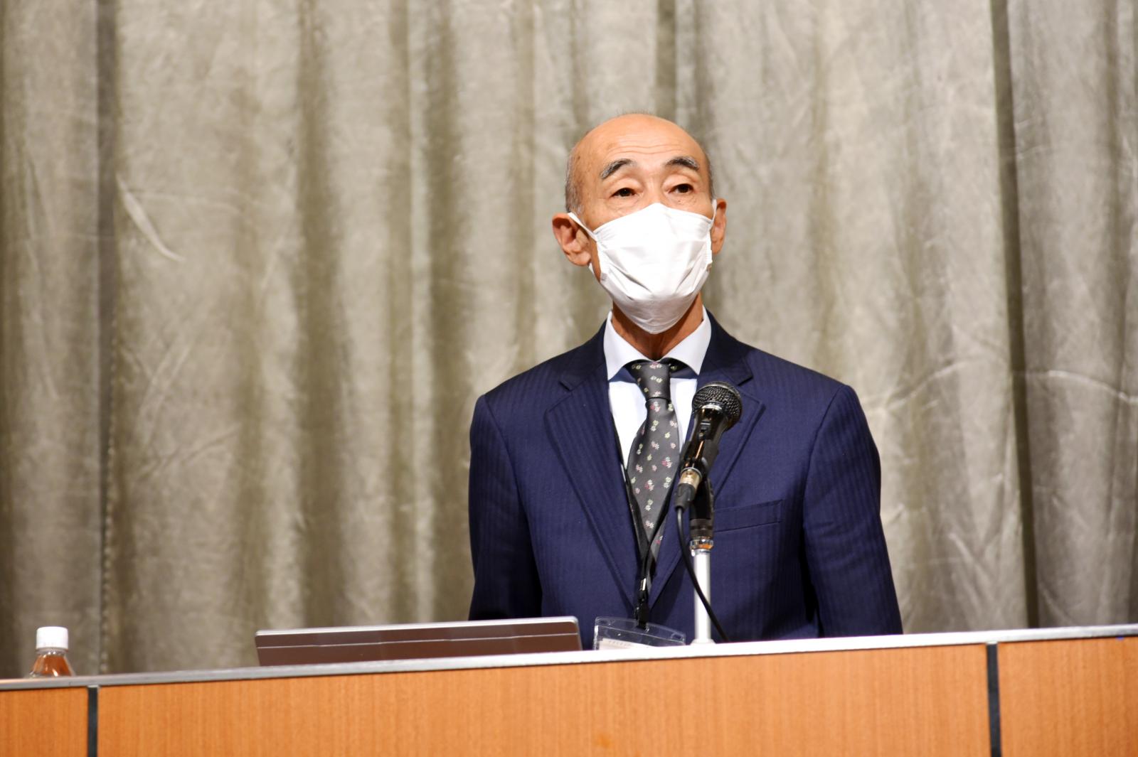 基調講演では、一般社団法人持続可能な地域社会総合研究所の藤山 浩 所長から「持続可能な地域社会へスマート農業技術を生かす」と題してご講演いただきました。藤山所長は、「秋田県の人口減少に伴い農業従事者も激減することが予測される。その上で、地域への定住を促進するためには地域のコミュニティーの維持が必要、営農を維持するためにはスマート農業の導入が不可欠。導入にあたっては、女性や若者が活躍できる場を作ることが重要だ。」と述べられました。