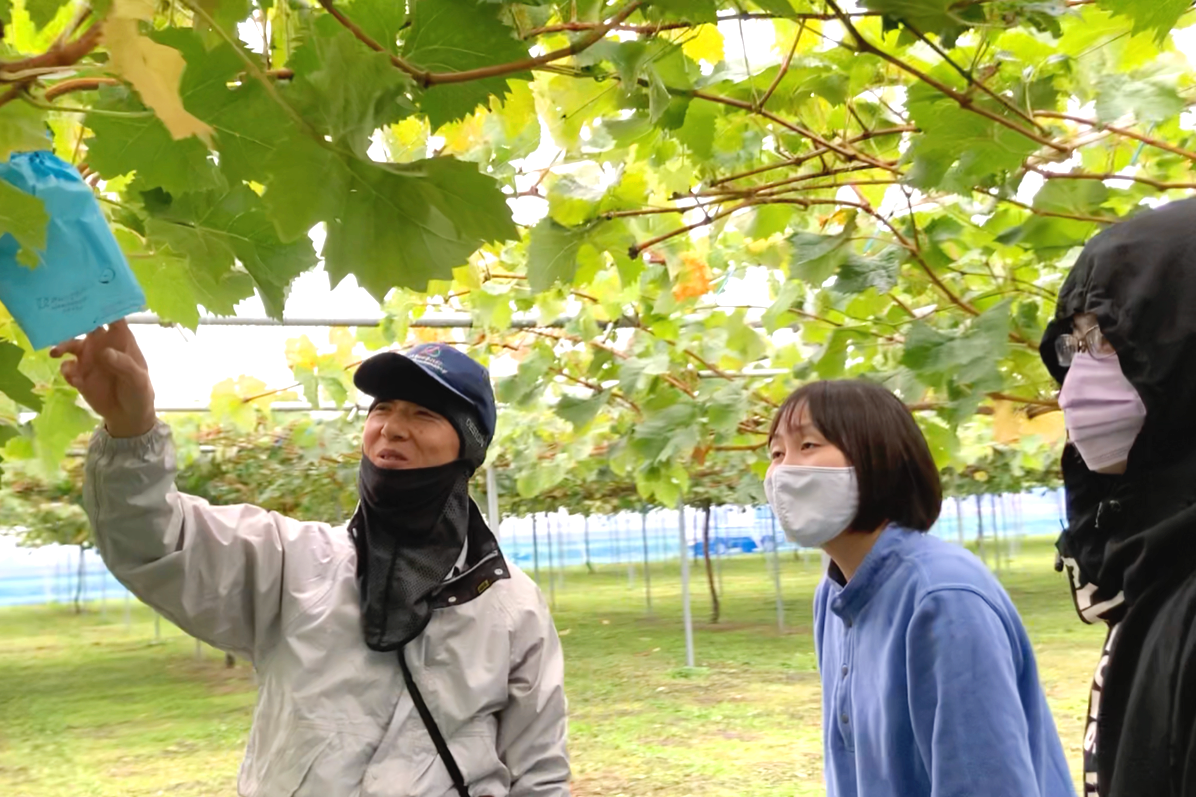 マスカット狩り美味しかったし、楽しかったです! 栽培方法などを聞き、これを育てるのにすごく労力がかかっていることがわかりました。中には値段がつかないマスカットもあり、農業の世界は厳しいことを実感しました。今回の研修はとても良い経験となりました。