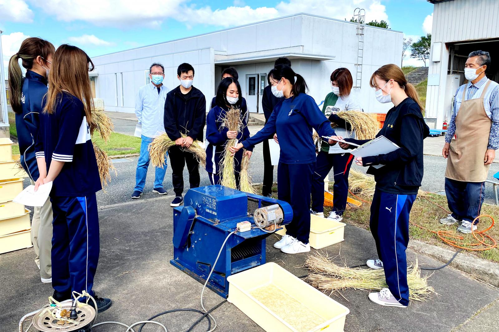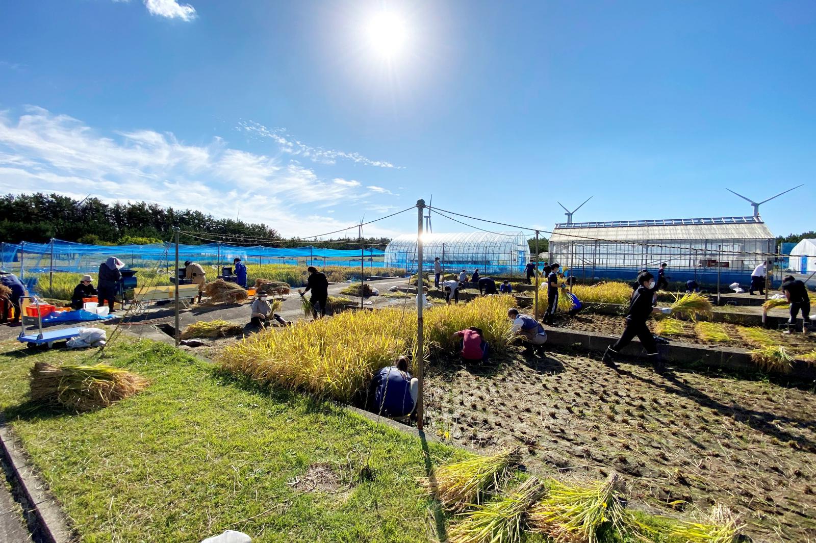 秋田キャンパス実験圃場で稲刈り実習を行いました