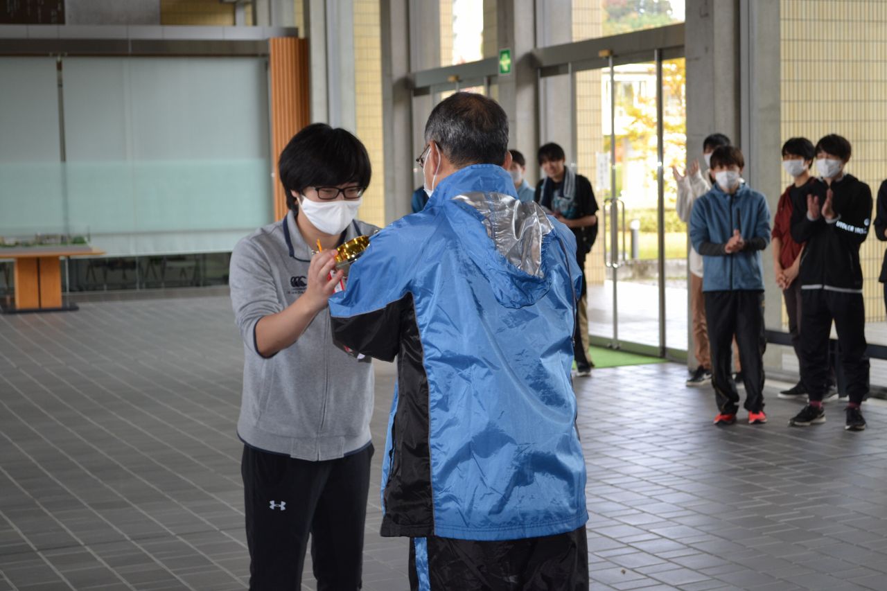 競技終了後雨が強くなり、急遽正面玄関移動しての表彰式になりましたが、テントなどの撤収作業など全チームで協力して迅速に行うことができ、競技外でも交流を深められたと思います。