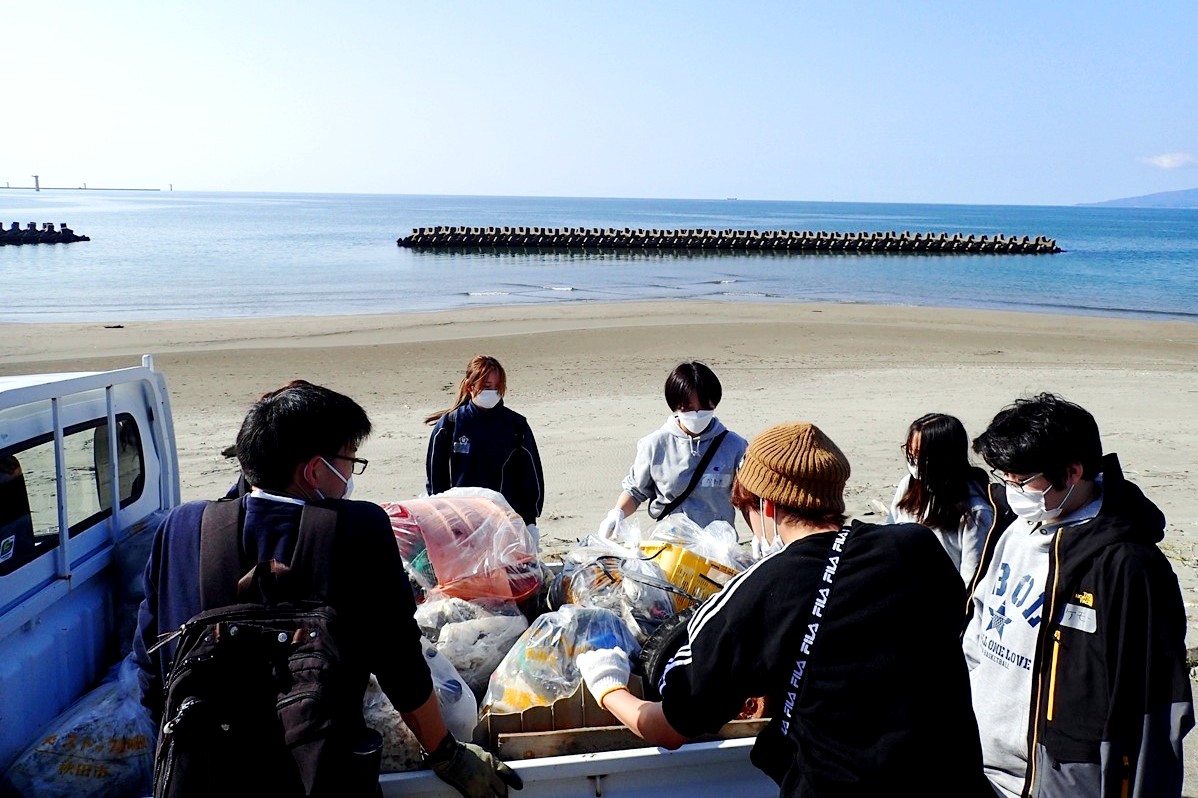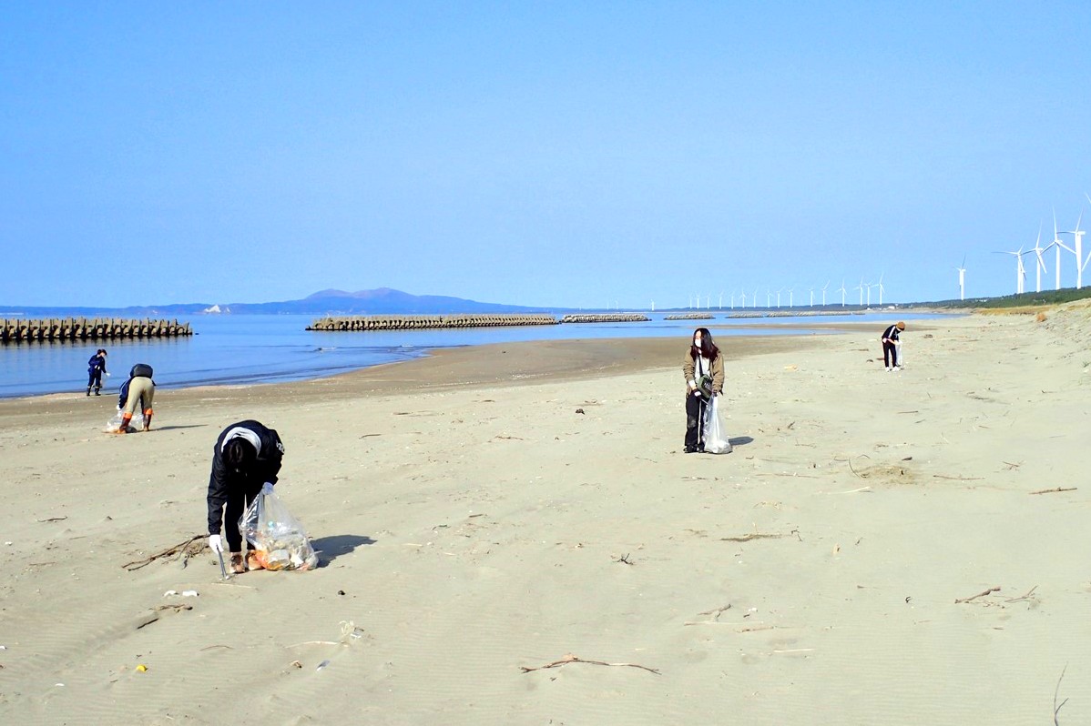 秋田キャンパスそばの海岸で海ゴミのクリーンアップ