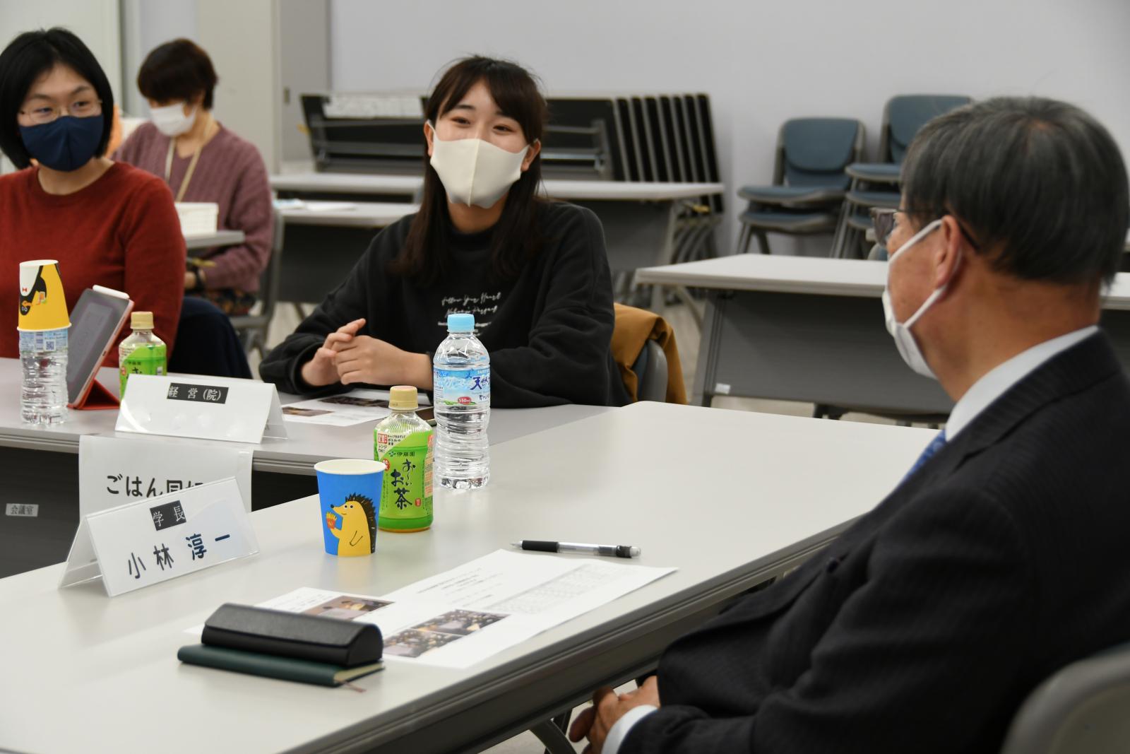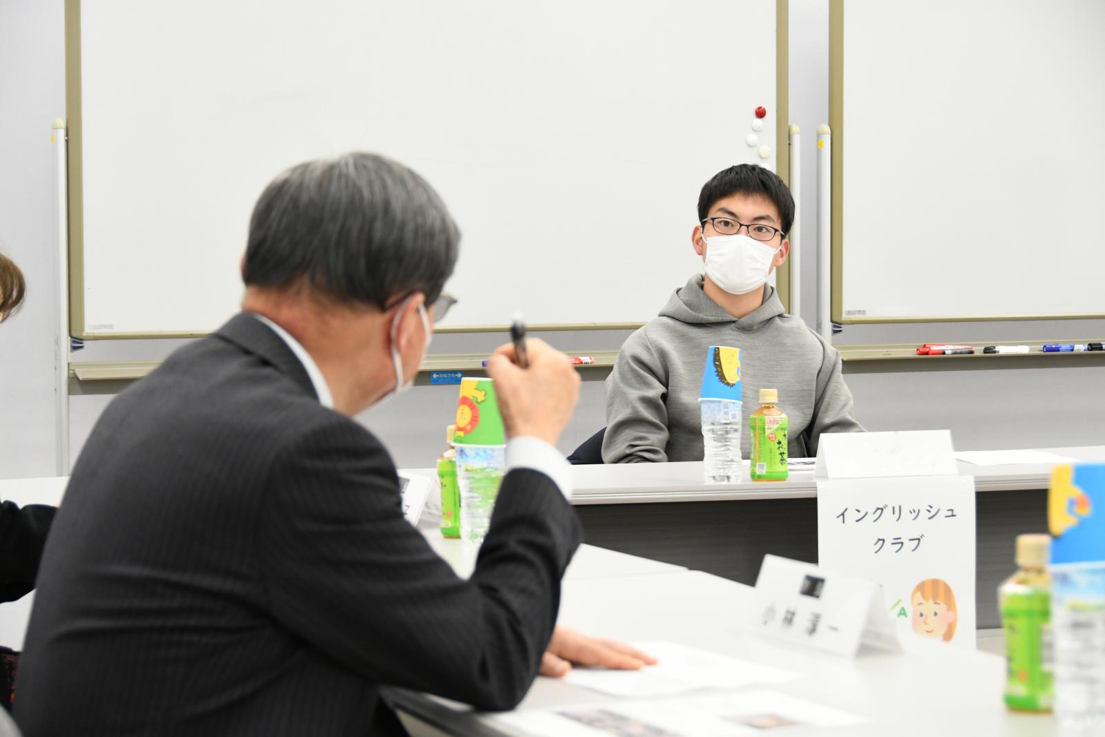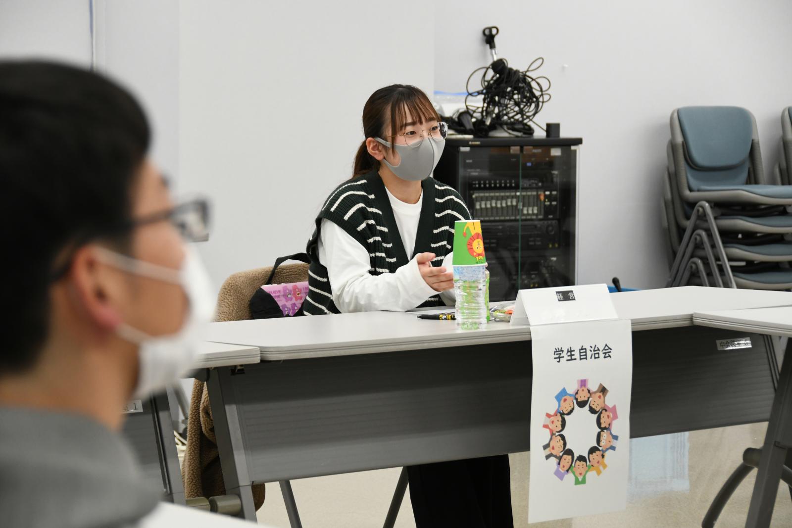 コロナウイルス感染拡大の影響で、しばらく思うように学内イベントを開催できていないという学生自治会については、小林学長、吉澤副学長から、「クリスマスに合わせてデコレーションなどをして存在感を示してみては?」「団体と団体を繋ぐ組織として、これからも是非がんばってほしい。」など、具体的なアドバイスやエールをいただきました。