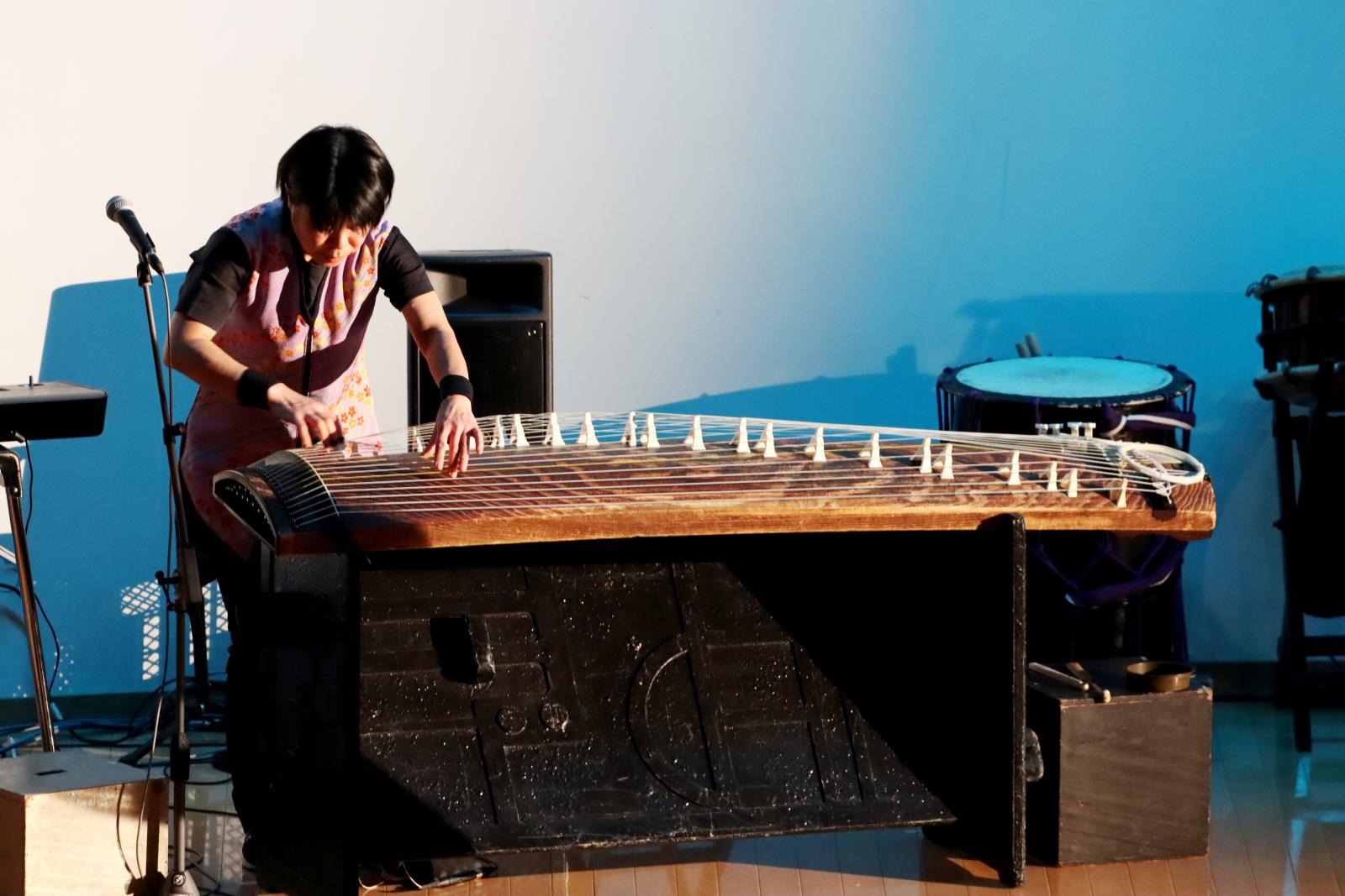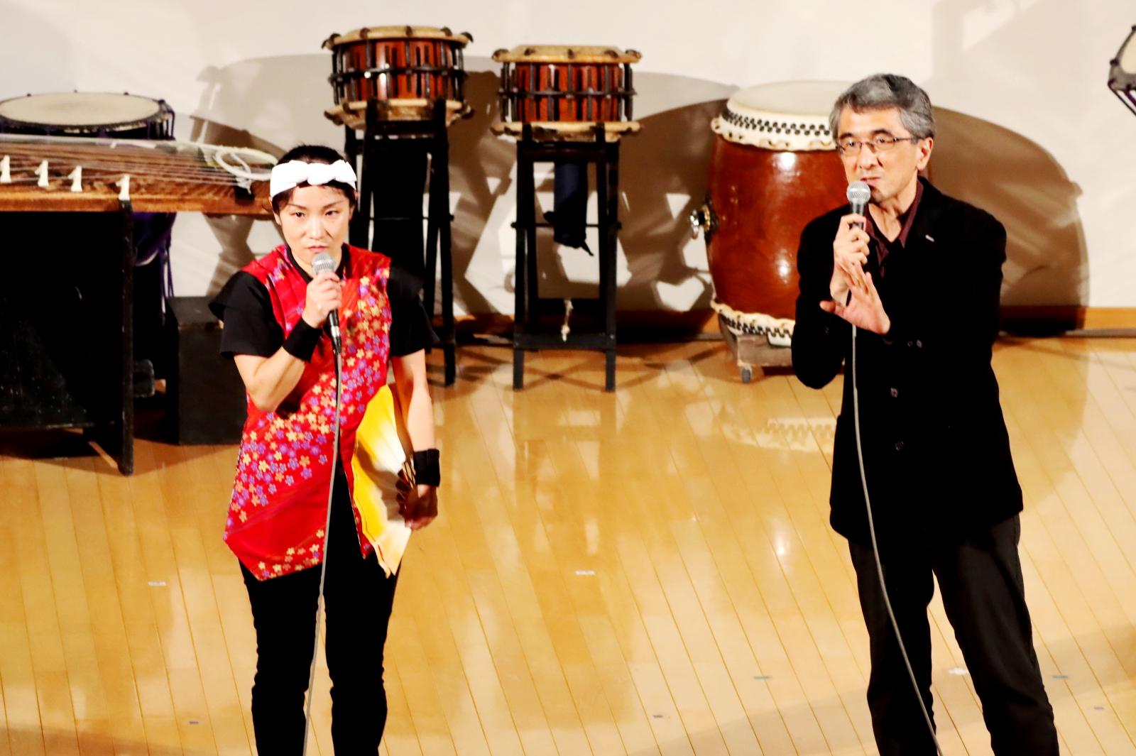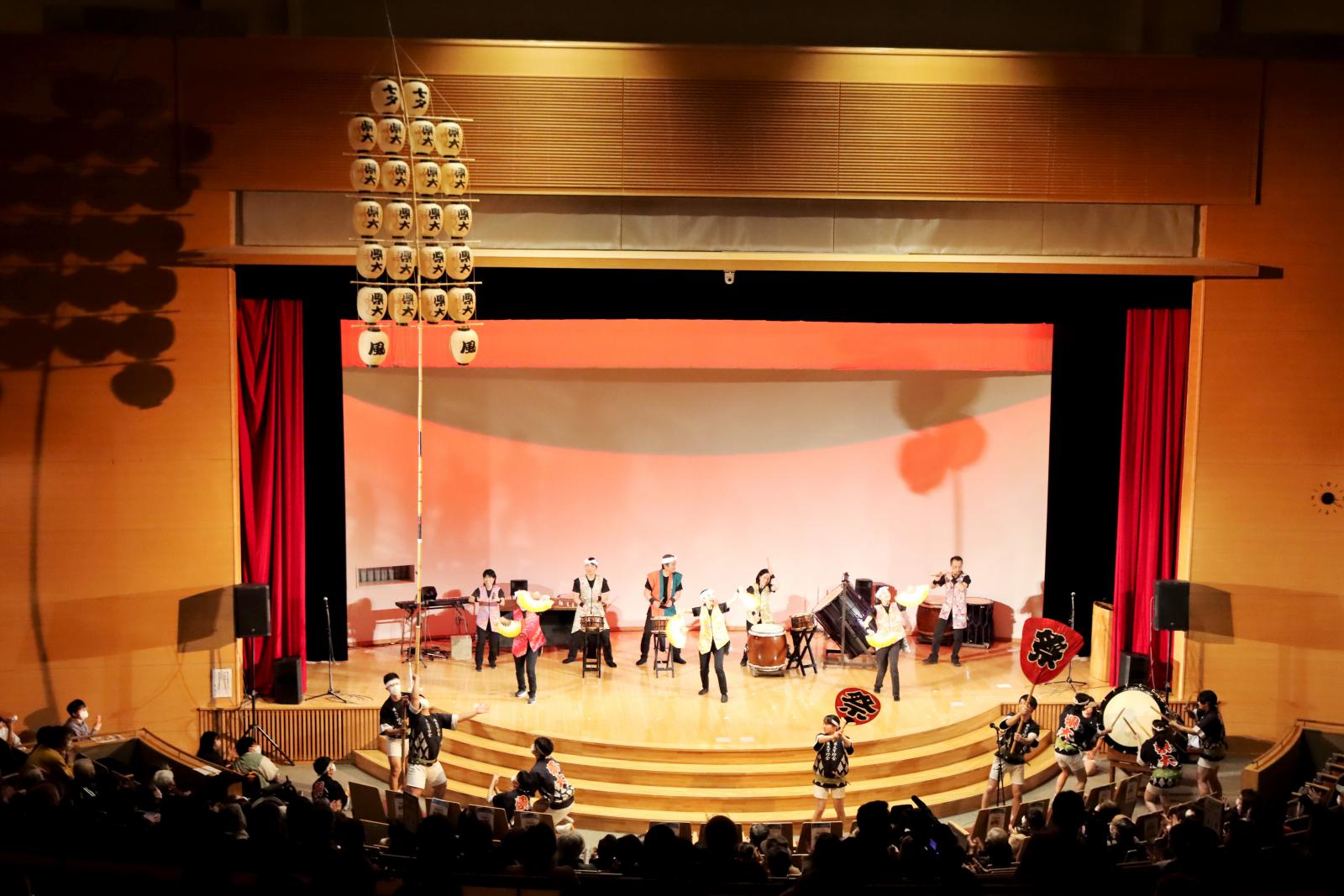 第1部「わらび座和楽器ライブ WALIVE -共鳴」では、随所に秋田の祭りが取り入れられ、本県の「ドンパン節」や北海道の「ソーラン節」、山形の「花笠音頭」といった民謡が、琴や三味線、和太鼓などの和楽器で演奏されました。「竿燈」や「大館囃子」では、秋田県立大学竿燈会がコラボ出演し、軽快なお囃子に合わせ迫力の演技を披露、来場者から手拍子や大きな拍手が沸き上がり観客を魅了しました。