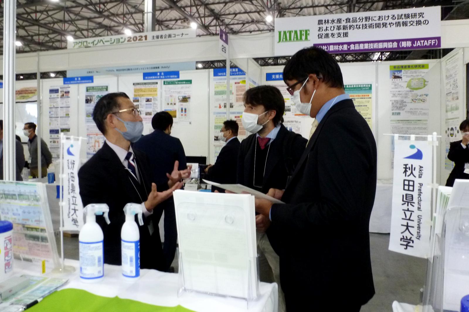11月24日から26日の3日間、東京ビッグサイト青海展示棟で、農林水産省が主催する「アグリビジネス創出フェア2021」が開催され、本学から農業分野に関する研究の取組や成果を出展しました。このイベントは、総勢135団体が参加し、全国の産学の機関が有する、農林水産・食品分野などの最新の研究成果を展示やプレゼンテーションなどで分かりやすく紹介し、研究機関間や、研究機関と事業者との連携を促す場として開催する「技術・交流展示会」です。