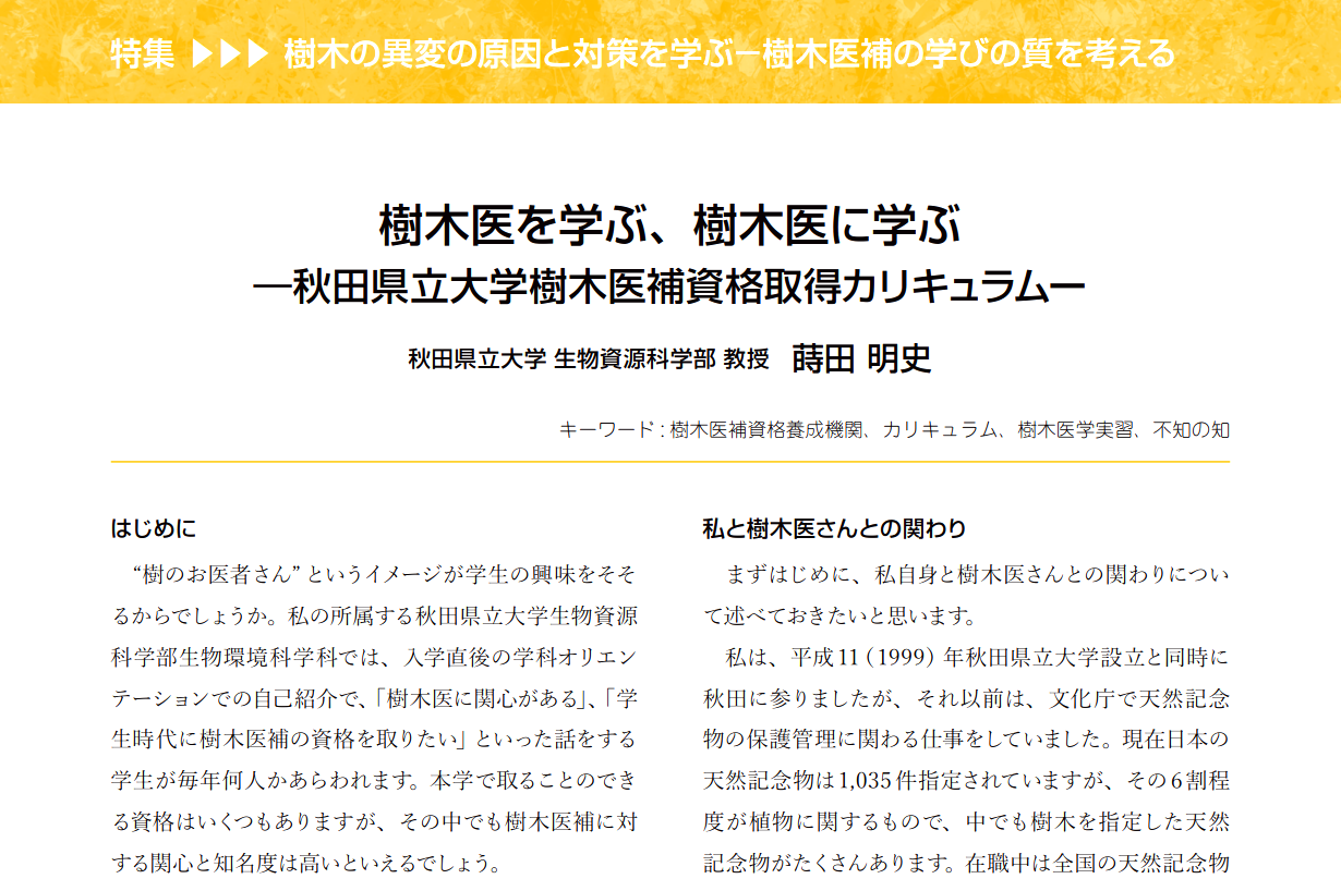 『樹木医を学ぶ、樹木医に学ぶ』―秋田県立大学樹木医補資格取得カリキュラムー