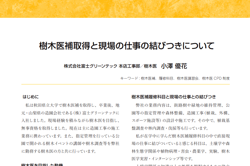 『樹木医補取得と現場の仕事の結びつきについて』