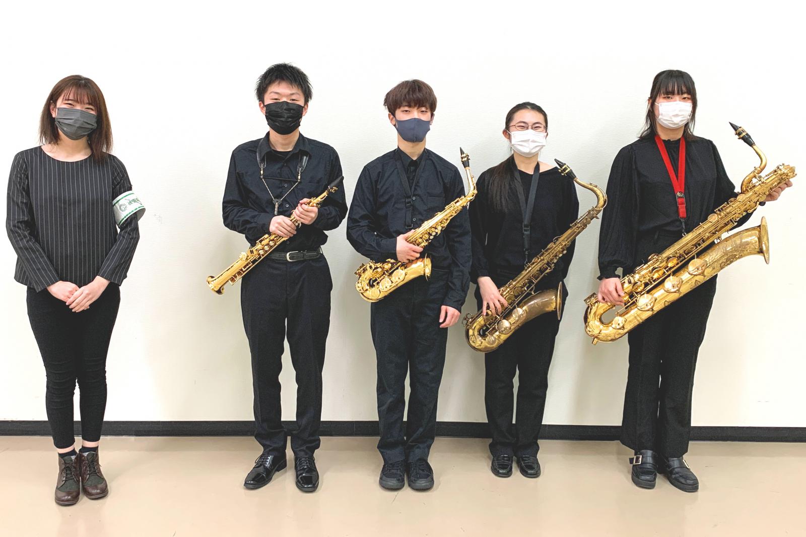 1月23日(日)に秋田市文化会館で開催された「全日本アンサンブルコンテスト第44回秋田県大会」で、アンサンブル・サークル(顧問:生物生産科学科 川上 寛子助教)が大学の部に出場し、サクソフォン4重奏がゴールド金賞を受賞しました!!アンサンブル・サークルは、来月2月13日(日)に宮城県仙台市(仙台銀行ホール イズミティ21)で開催される東北大会に秋田県代表として出場(2大会続での東北大会出場)します。新型コロナウイルスの影響で前回大会が中止となったため2年ぶりの開催となりました。多くの大会が中止となり、また活動が制限される中、アンサンブルサークルにとって待ちに待った金賞受賞となりました。夢の舞台である東北大会に向けてますます精進してまいりますので、今後ともご声援のほど宜しくお願い致します。