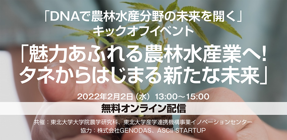 ■日 時:2022年2月2日(水)13:00~15:00■共 催:東北大学大学院農学研究科、東北大学産学連携機構事業イノベーションセンター