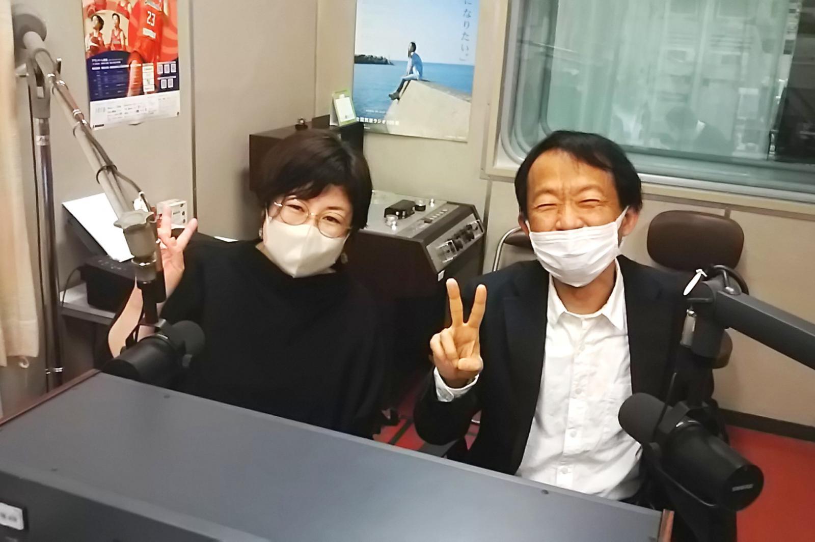 収録の様子 エフエム秋田 田村陽子アナ(左)