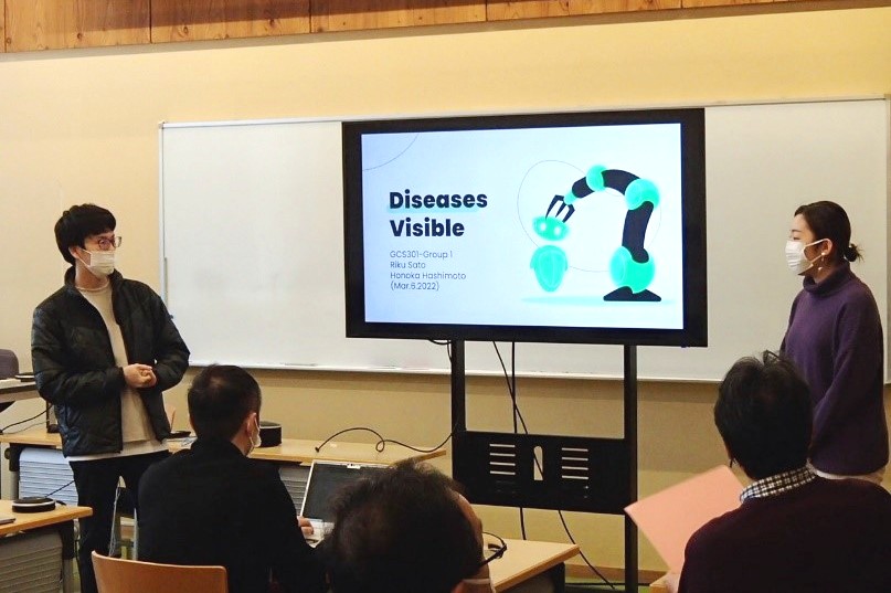 2022年3月4日(金)から6日(日)の3日間、本学の西口 正之教授、石本 志高教授、齋藤 敬准教授、堂坂 浩二教授、及び国際教養大学のフローラン・ドメナック教授が講師及びコーディネーターとして担当、集中講義「持続可能な社会と情報処理」を実施しました。この科目は、人間・社会・技術の複雑な関係を、両大学それぞれの強みを活かして理解し、大学間・学際的な理解力を養うことを目的としています。PBL(問題解決型学習)、AIやデータサイエンスの入門的な講義から最先端の研究、フィールドワーク、グループワーク、学生によるプレゼンテーションなど、科学の異なる分野にまたがるさまざまなアプローチを適用して、受講生が現実の問題に触れ, 主体的に学び, 新しい知識を獲得し, それを自分の言葉で表現できるようにする多面的な能力を養うためことを目的としております。