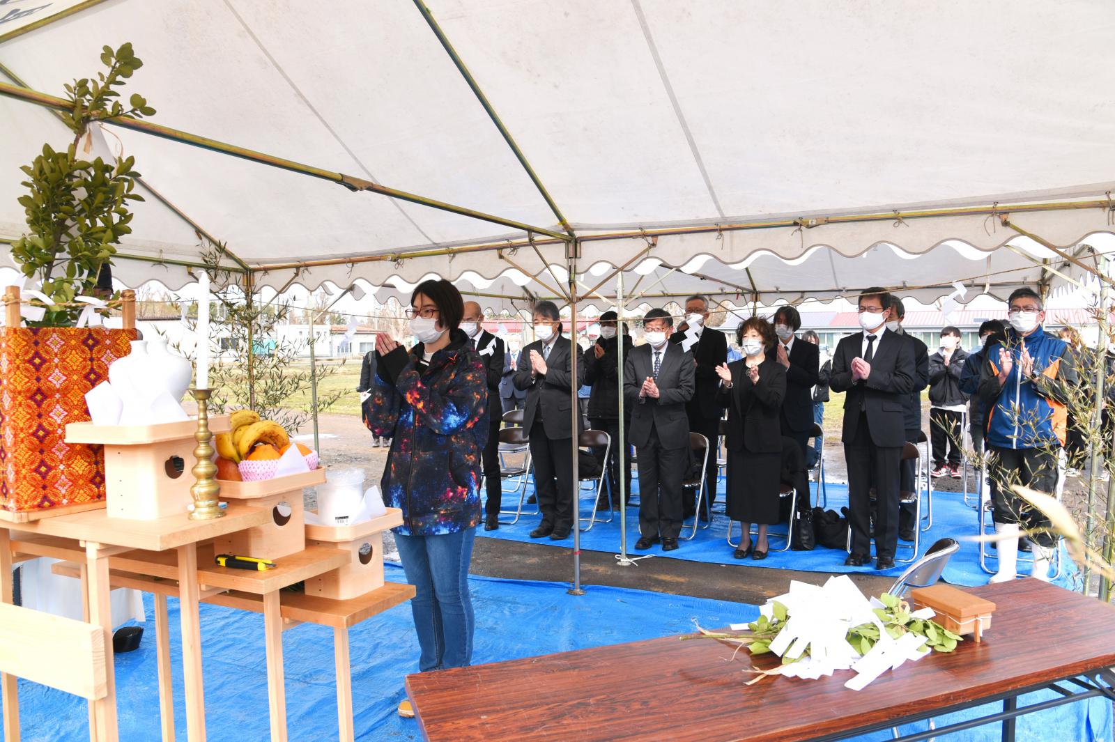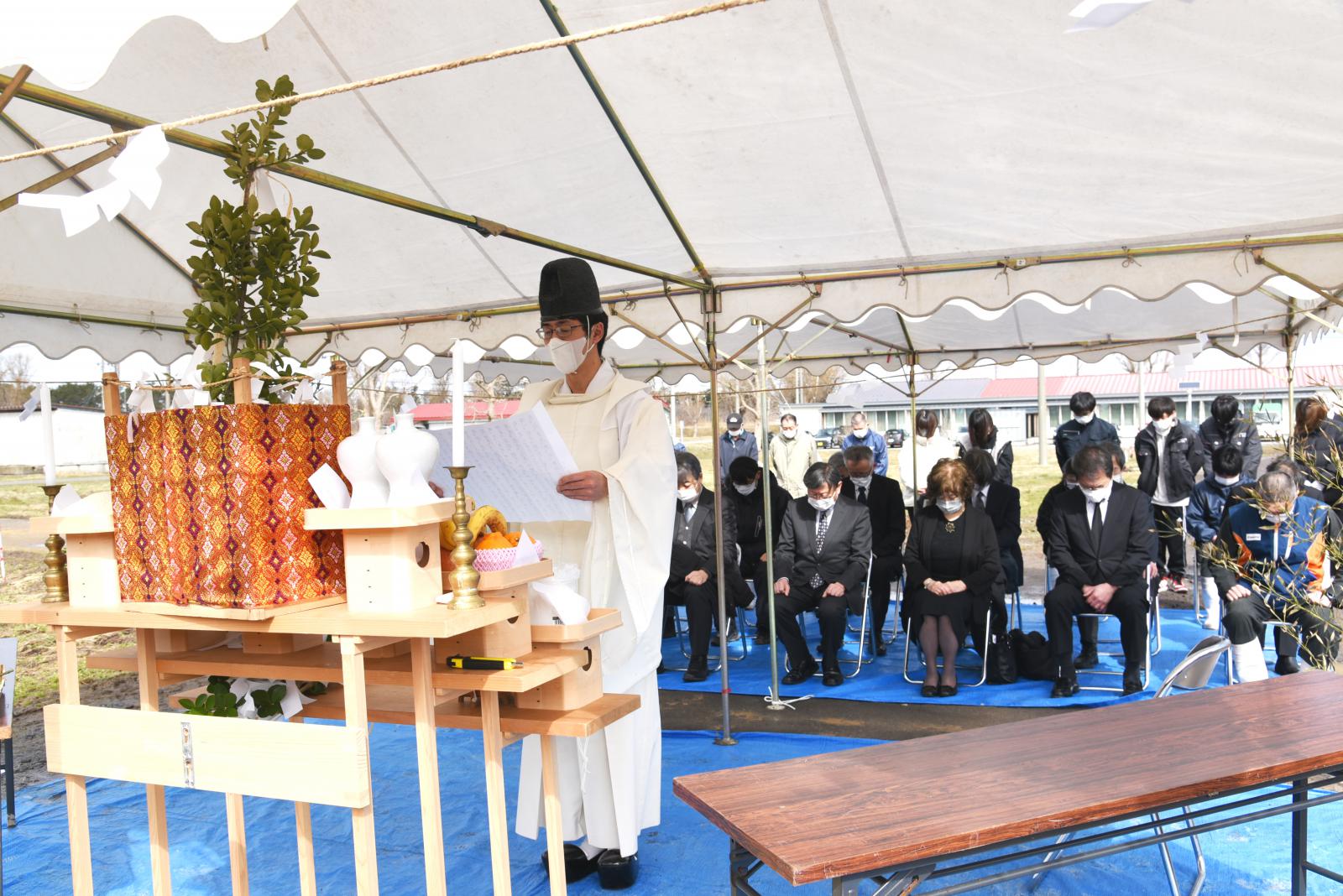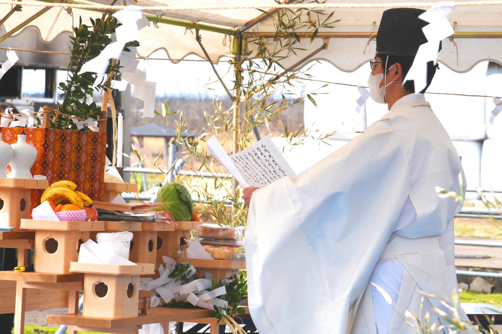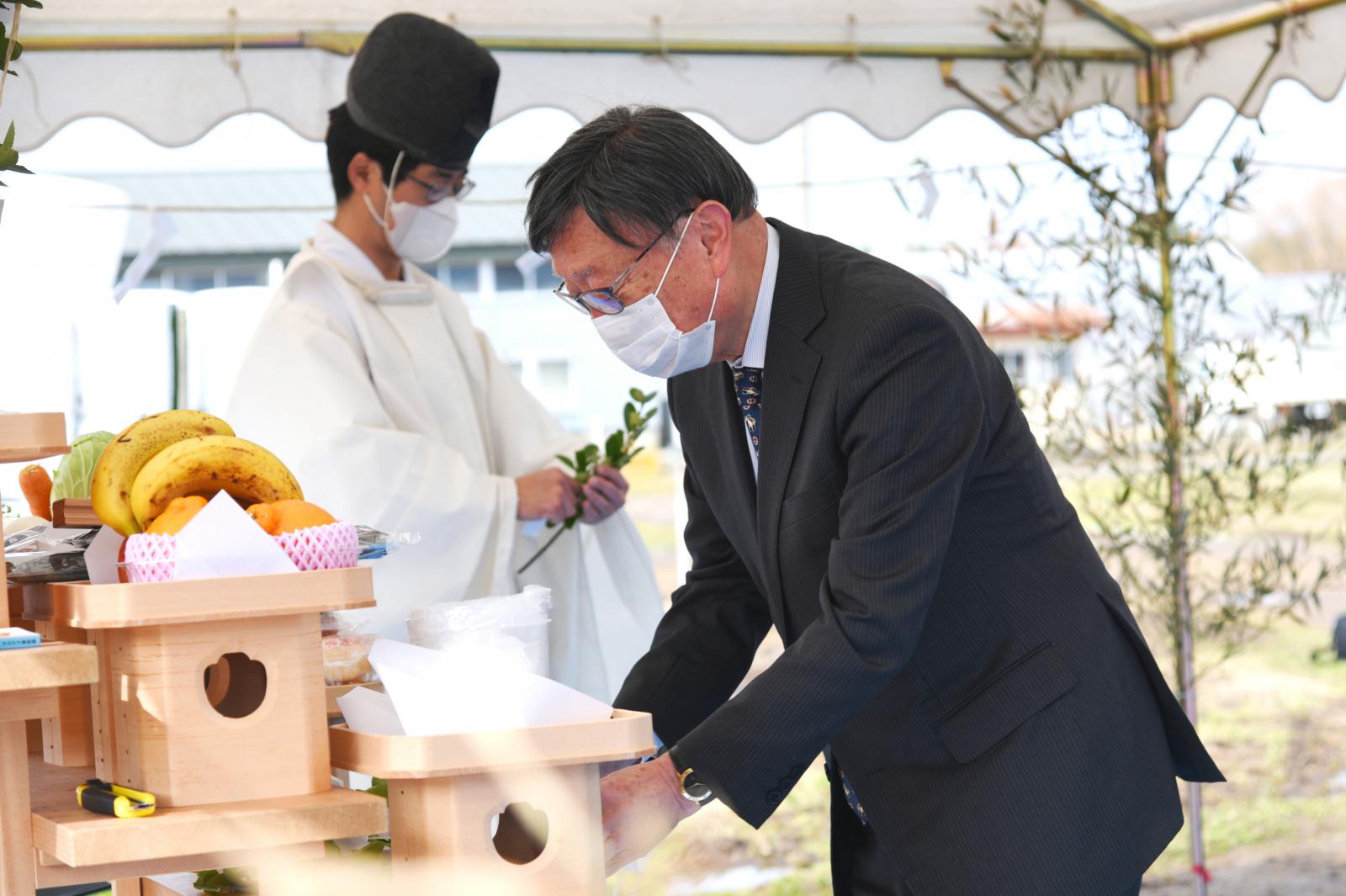 令和4年3月14日、アグリイノベーション教育研究センター牛舎において、1月に発生した牛舎火災により焼死した牛の慰霊祭が執り行われました。小林淳一学長をはじめ、アグリイノベーション教育研究センター教職員、アグリビジネス学科(家畜資源利用推進プロジェクト)の学生など約40人が出席し、玉串を祭壇に奉納し感謝と哀悼の祈りを捧げました。