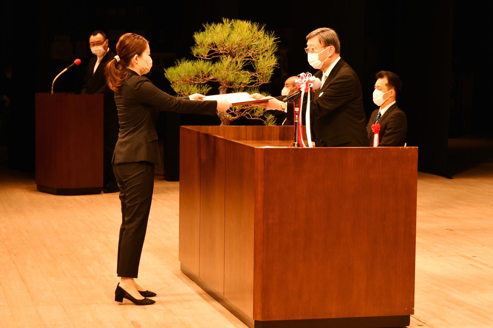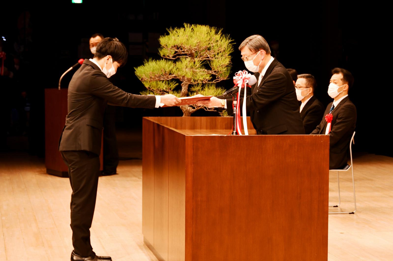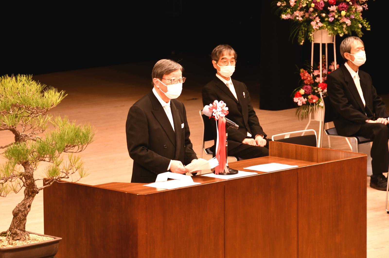 DX(Digital Transformation)により新たな革新が生み出されることで、より生産性と創造性の高い仕事が求められます。物事の本質を見極め、自ら課題を抽出・解決するセンスを磨いて欲しい。健康に留意され、それぞれの環境の中で成長し、社会で活躍して欲しい」と述べ、学生たちを激励しました。