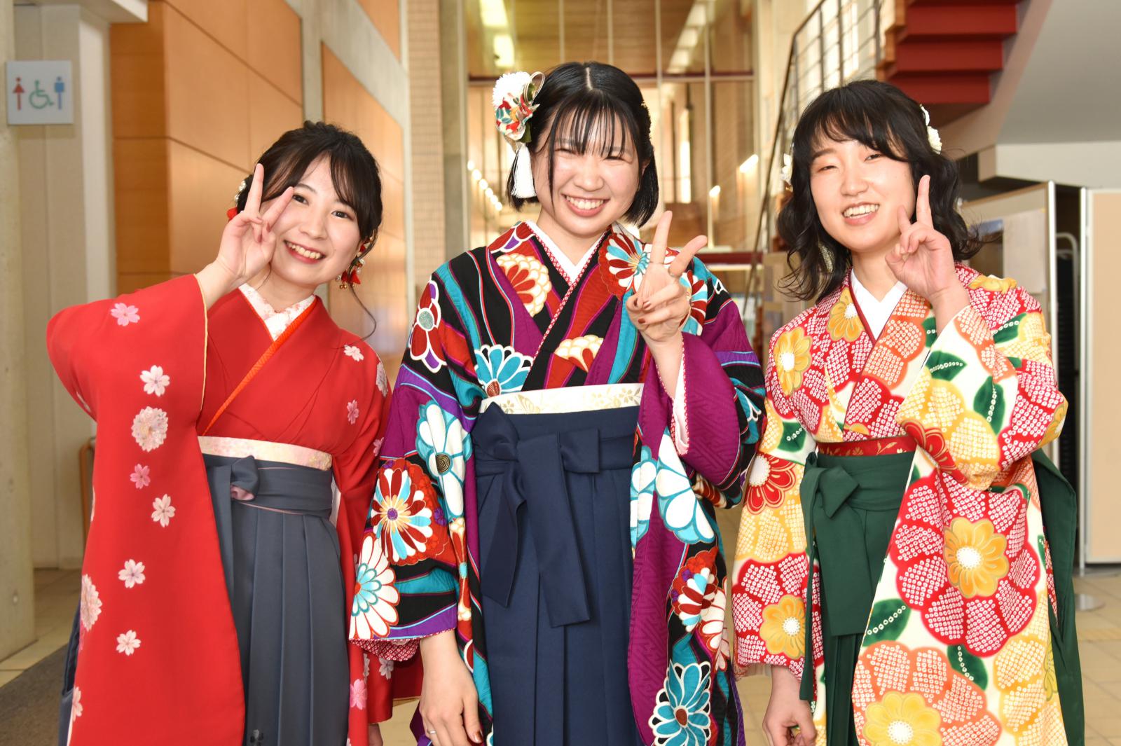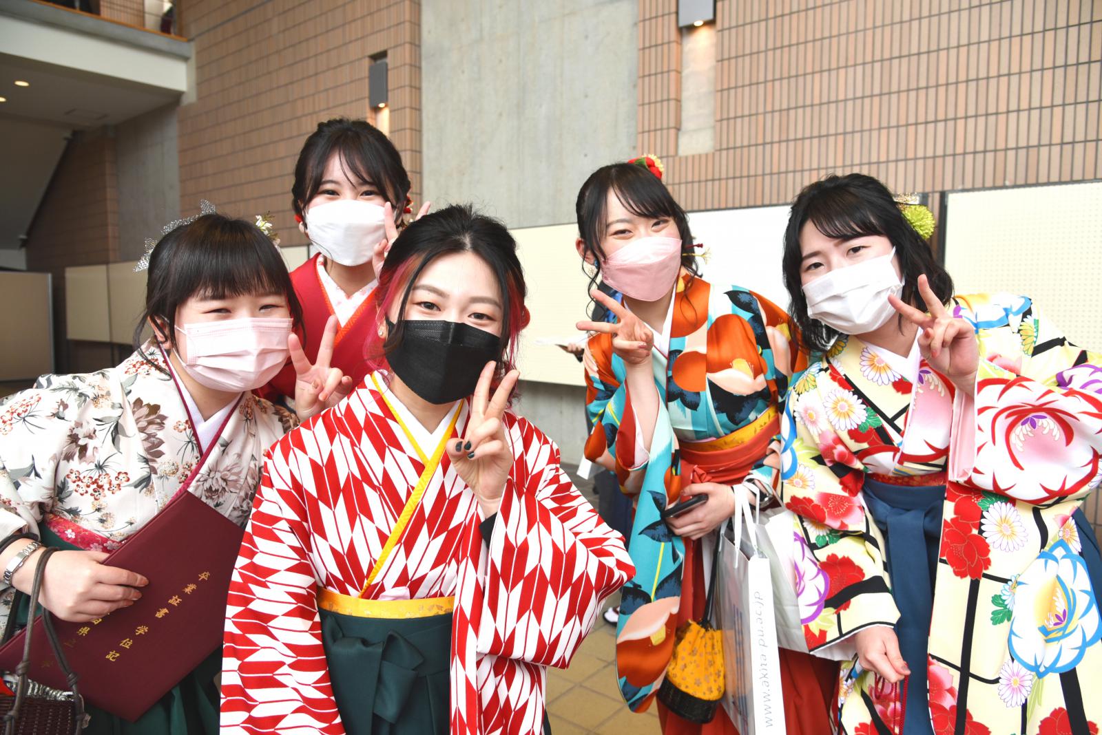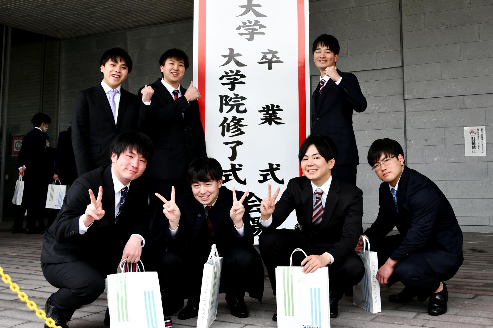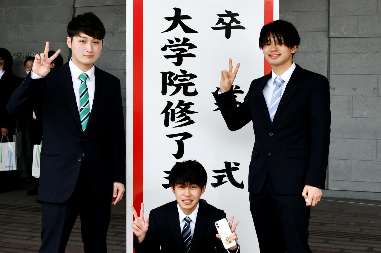 また、式の終了後には、友人や後輩らと記念撮影をして、別れを惜しむ卒業生らの姿が見られました。皆様の新しい門出を心よりお祝いいたします。