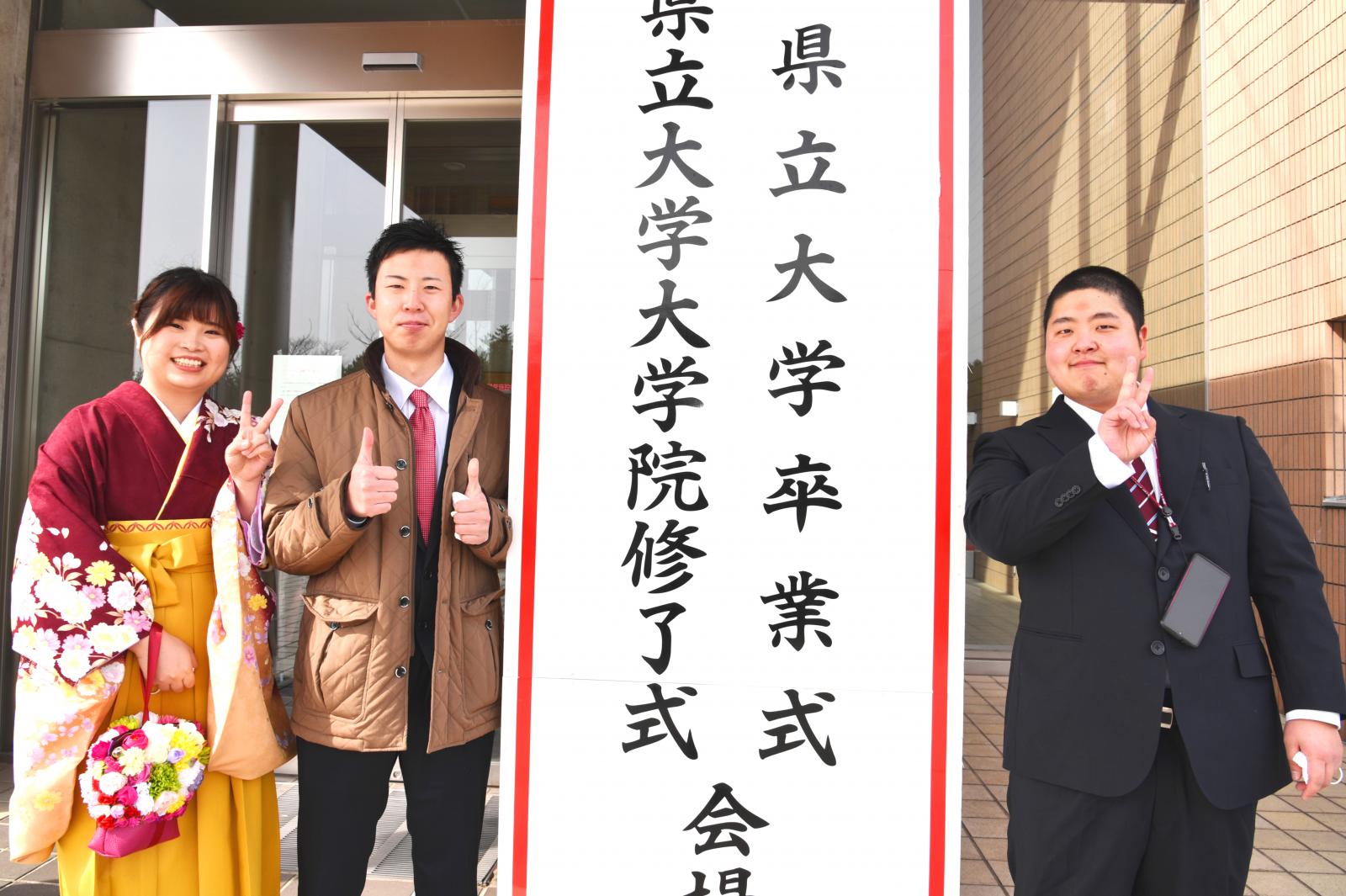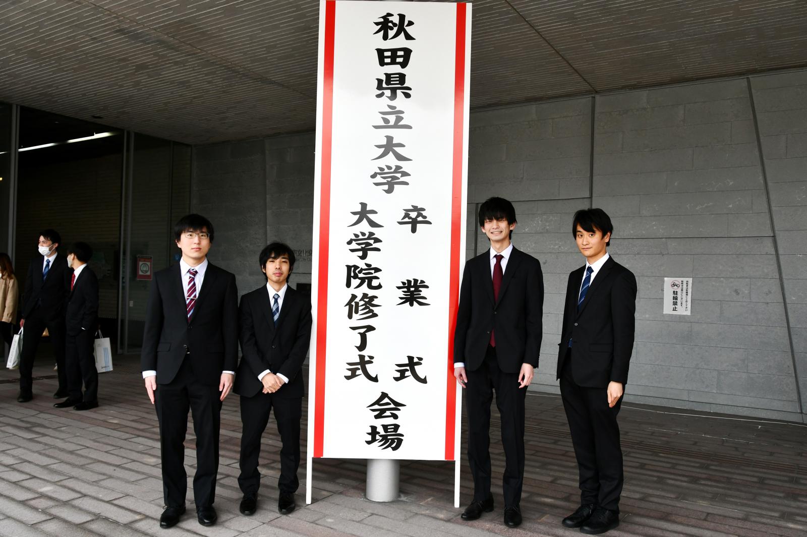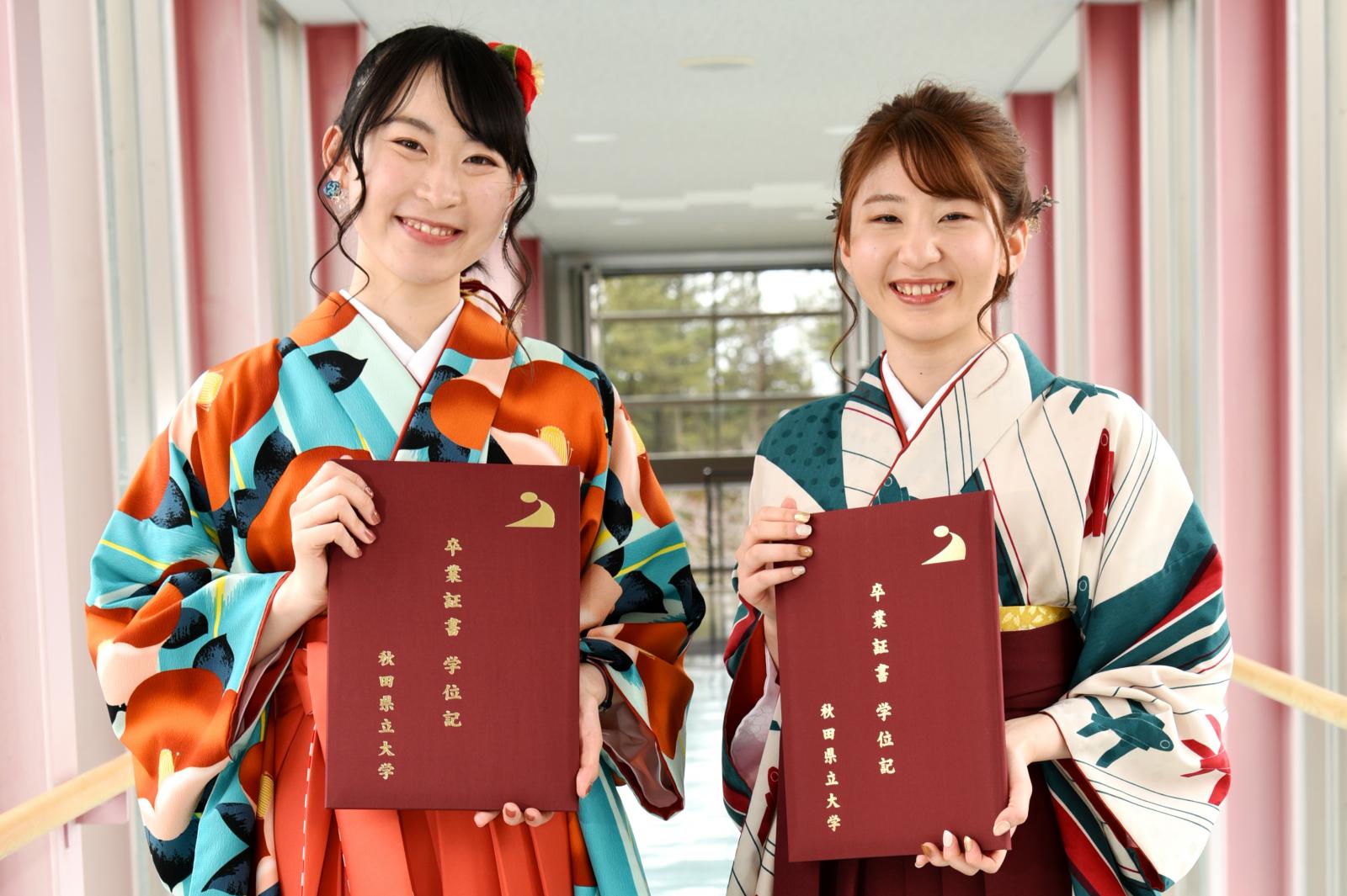 3月23日、令和3年度秋田県立大学卒業式・大学院修了式が執り行われ、学部生390名、大学院生65名が卒業・修了し本学を巣立ちました。