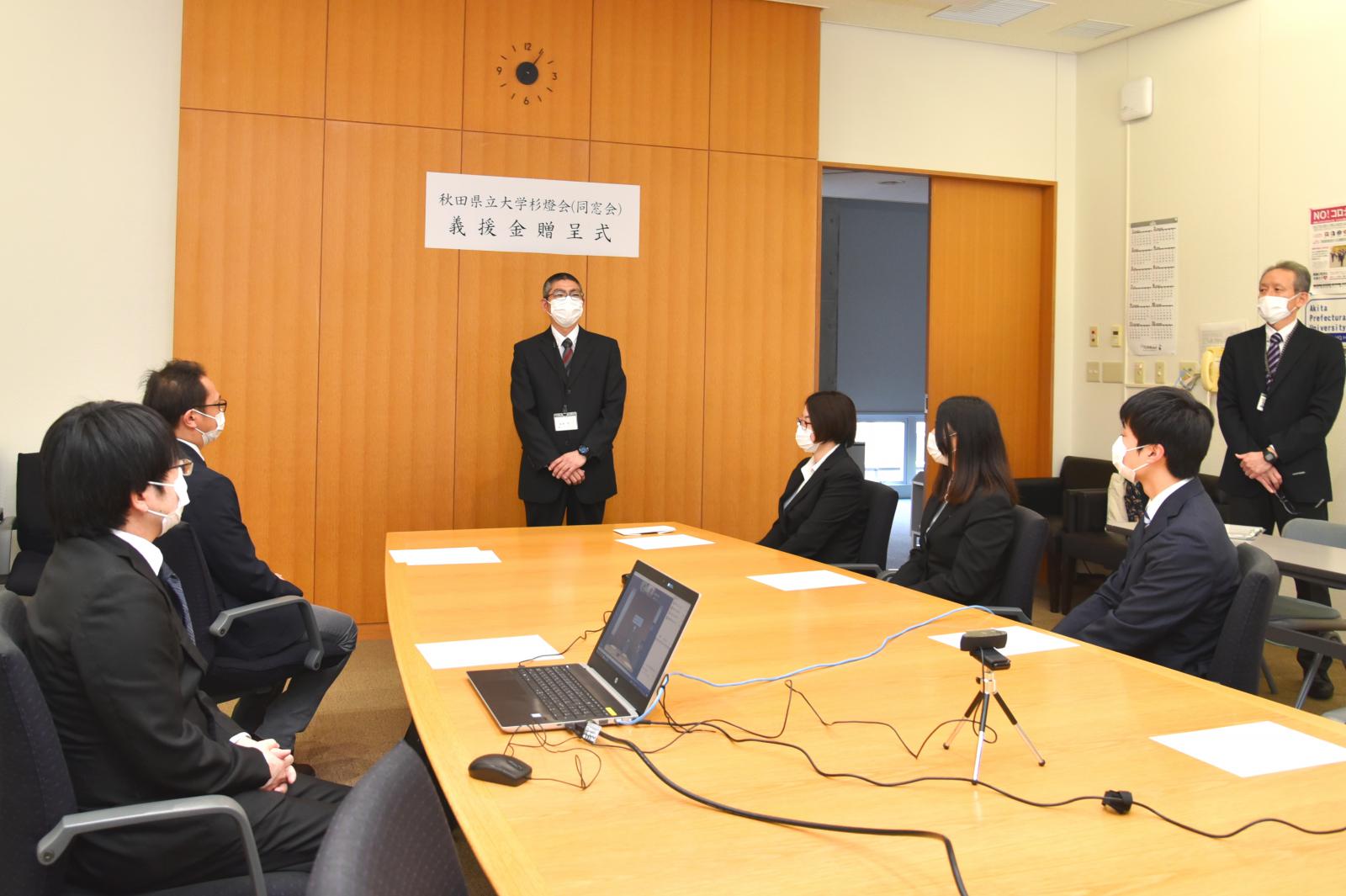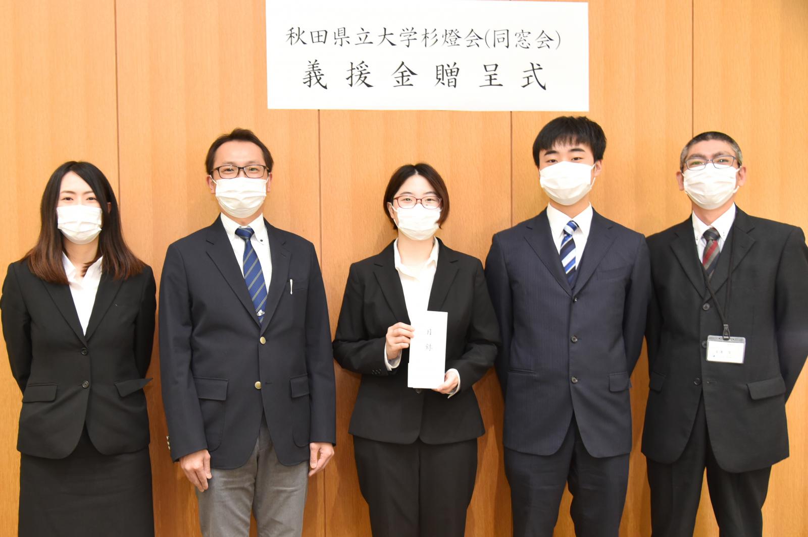 秋田県立大学同窓会『杉燈会』から義援金が贈呈されました