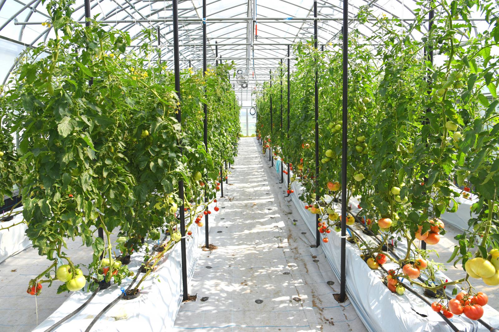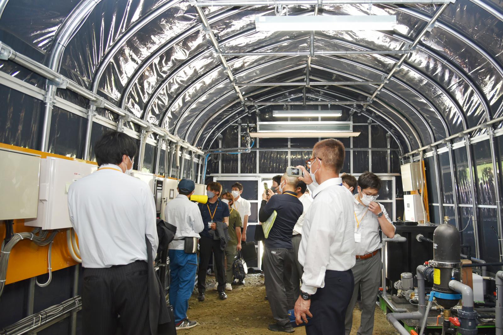 トマトの自動収穫ロボットの実証研究の様子など見学