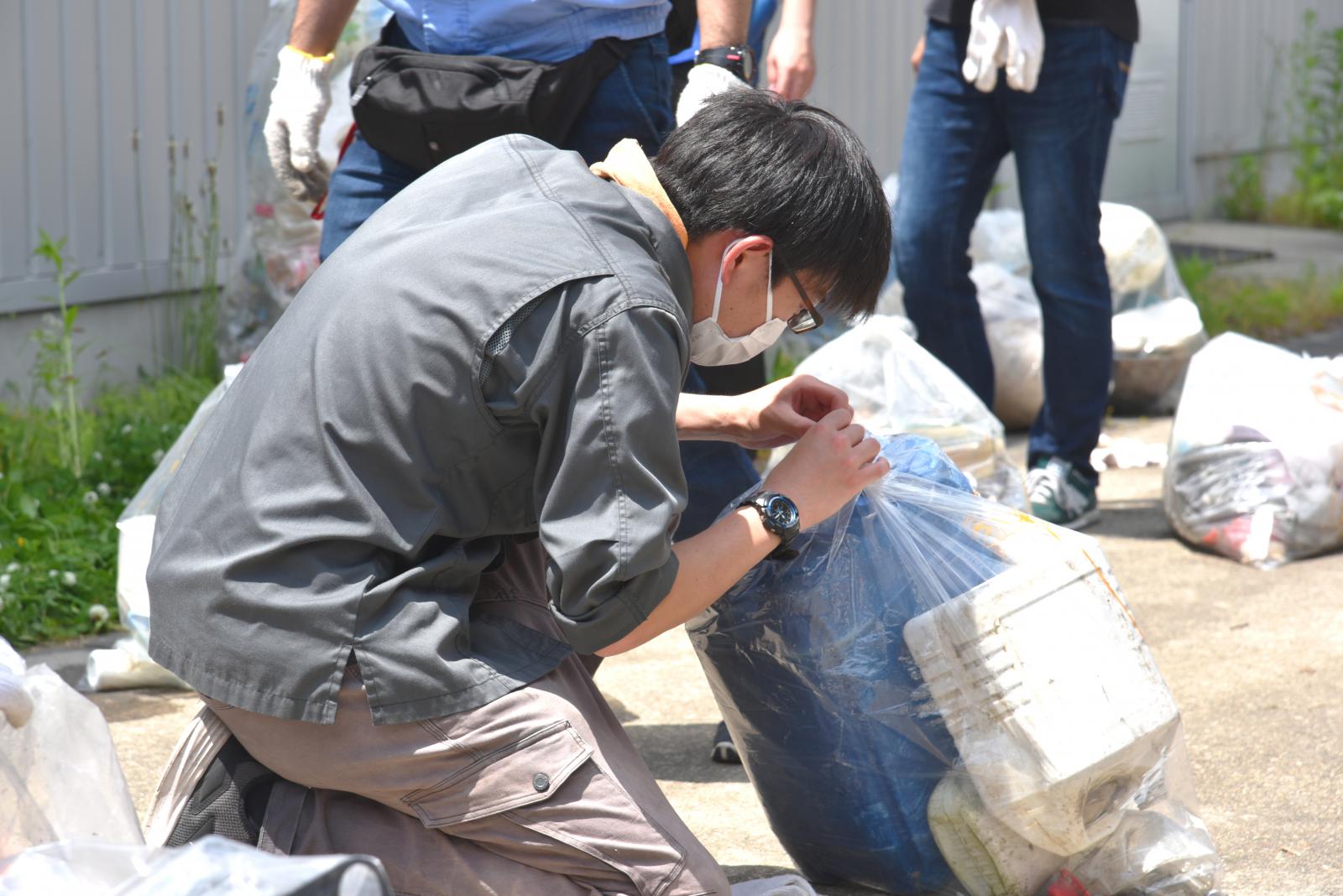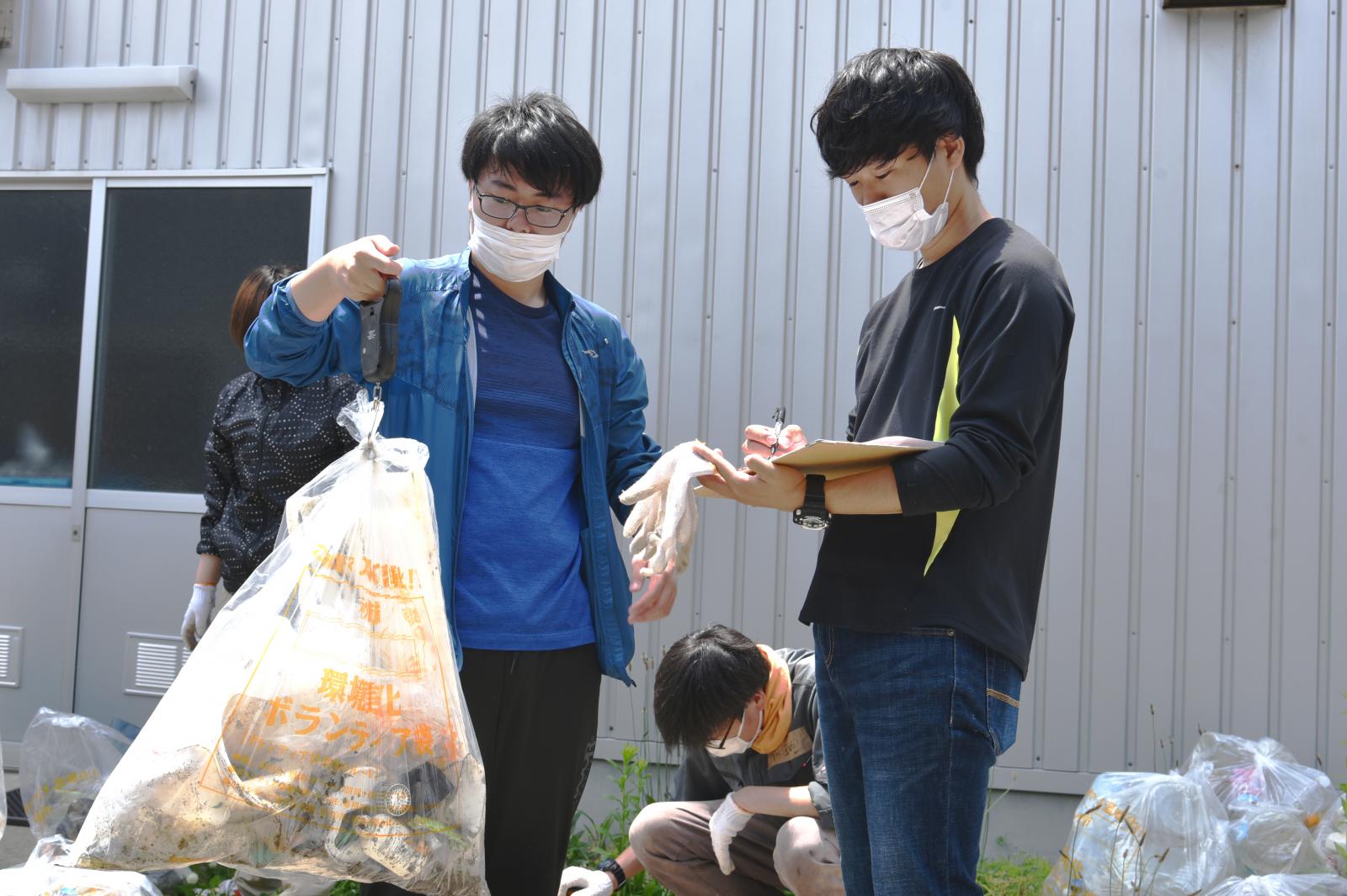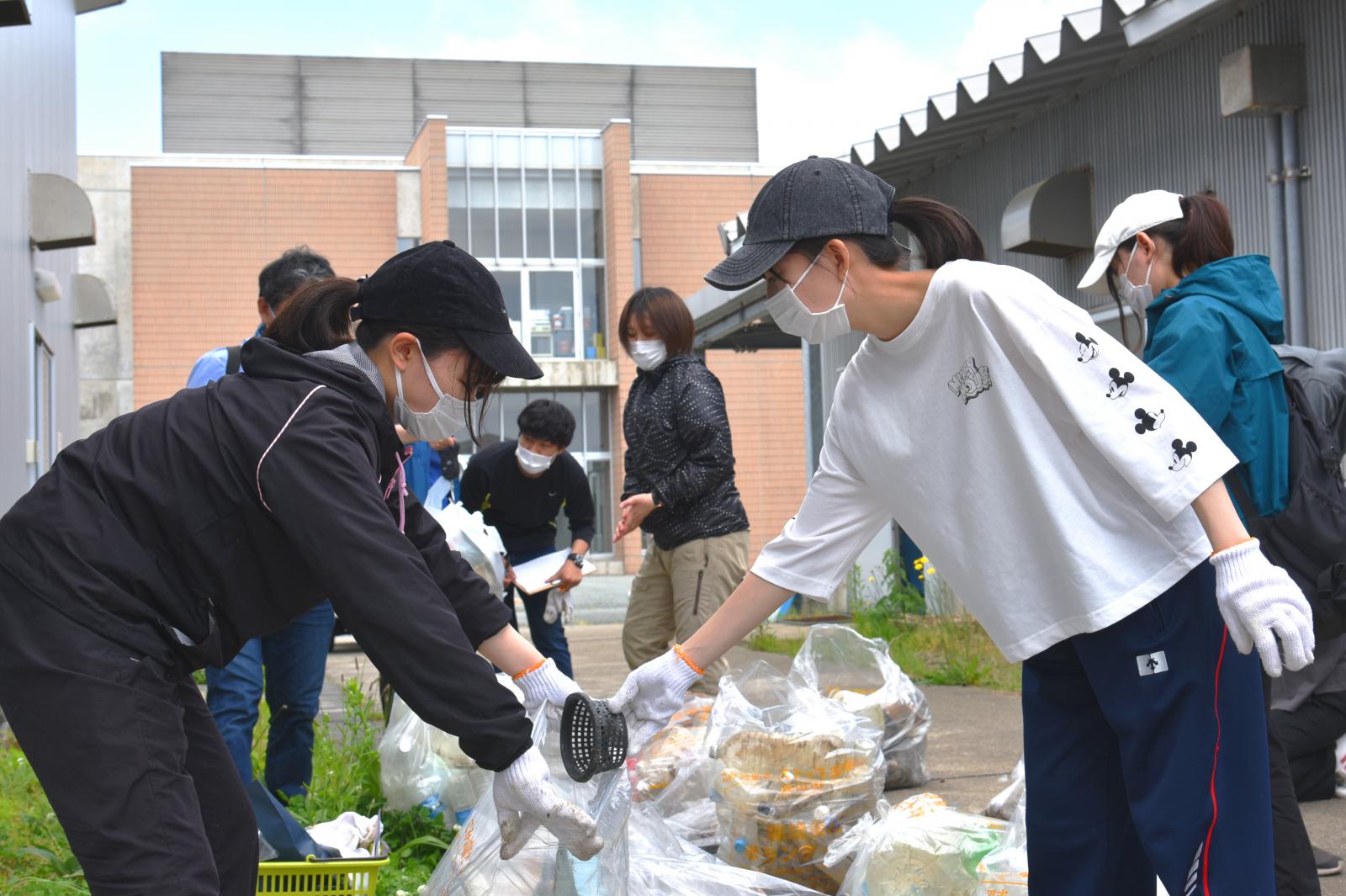 学生達は、漁網など砂に埋もれて取れにくいものに苦労する一幕もありましたが、終始笑顔で頑張って清掃しました。国内外から漂着したと思われる大小さまざまなプラスチックゴミ、空き缶、空き瓶など、45㍑のゴミ袋で66袋(総重量約206kg)を回収した一方、回収を断念せざるを得ないほどの重さの遺棄漁網も漂着していました。放置すれば風波でまた海に戻り漂流するため、こうした回収しづらい漂着ゴミの回収が課題となっています。