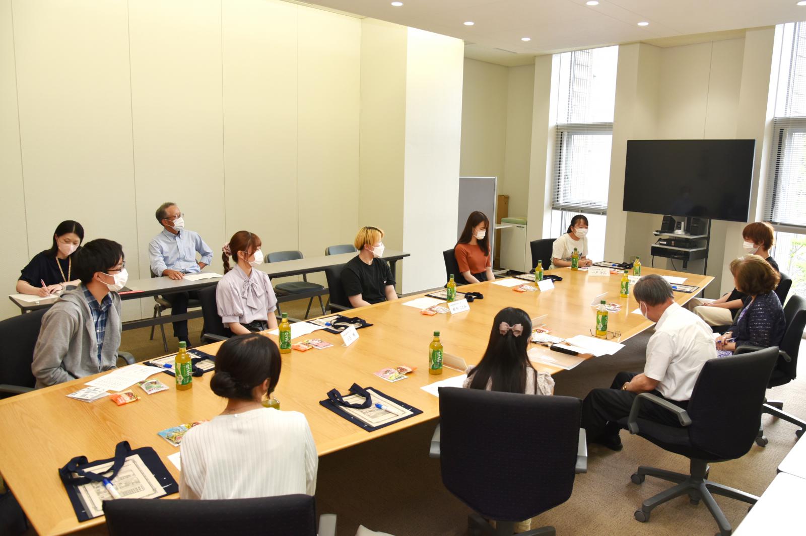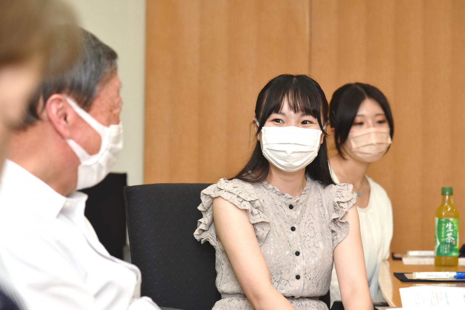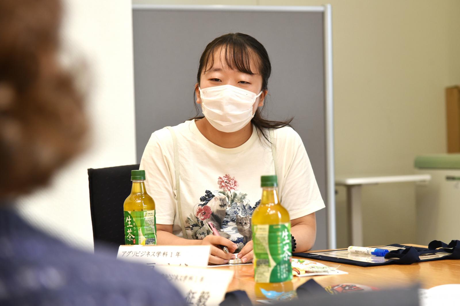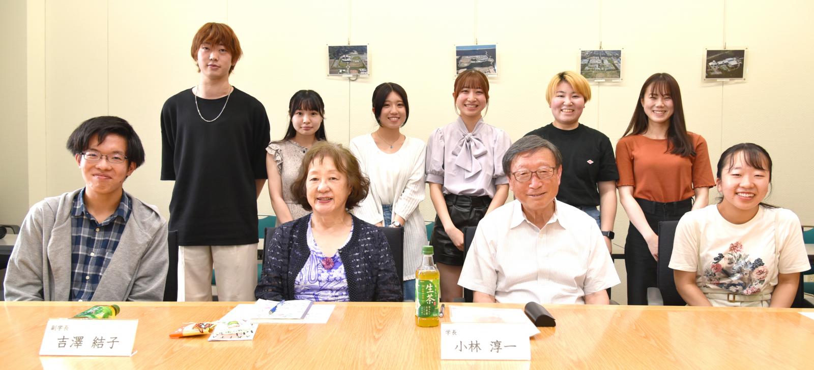 7月21日に、秋田キャンパスで、学生と学長との懇談会を行い、生物資源科学部1年生8名と小林学長・吉澤副学長が懇談しました。参加者は、県大を志望した理由や近況について語り合い、今後の大学生活で取り組みたいことや大学に対する要望についても話してもらいました。初めての一人暮らしについてや将来の進路のために今から取り組んでいることなど、学生生活が充実していることがうかがえる話を聞くことができました。