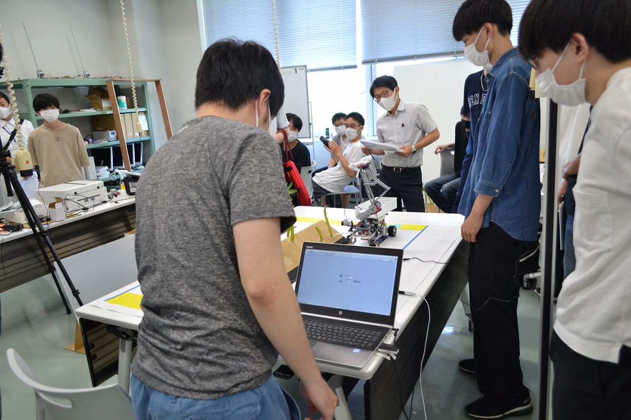 知能メカトロニクス学科では、機械工学と電気電子工学及び制御工学を中心とした専門科目や、システム思考に基づいてこれらの技術を組み合わせたメカトロニクスに関する科目について、プロジェクト型実習を中心として少人数教育を実施し、産業分野で応用できる問題発見・解決力を備えた人材を育てることを目標にしています。