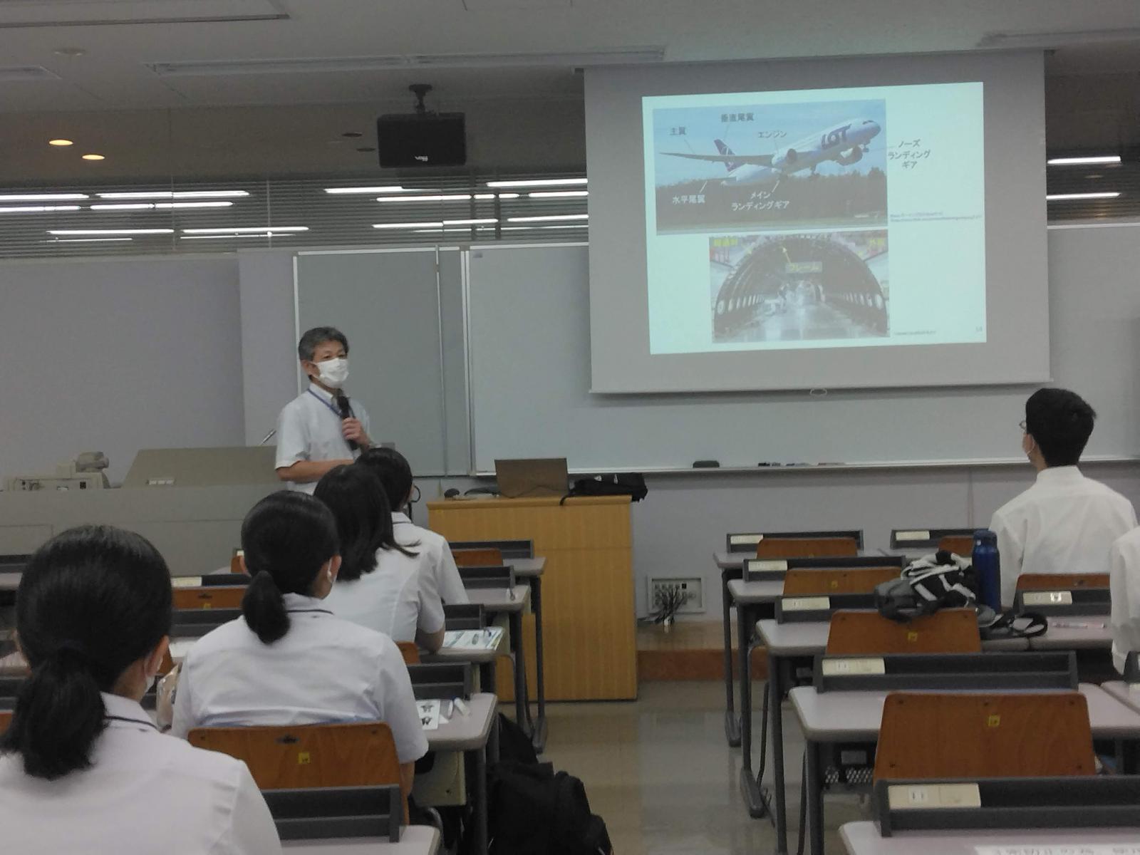 機械工学科の富岡 隆弘 教授が「機械工学ってなんだ?―大学の機械工学科で学ぶこと―」というテーマで機械工学について具体的にどのようなことを行っているのか、また、機械の「動き」に関わる「機械力学」についてイラストや実験を取り入れた講義を行いました。楽しく、分かりやすい講義に高校生の皆さんも興味を持ちながら熱心に取り組んでいました。