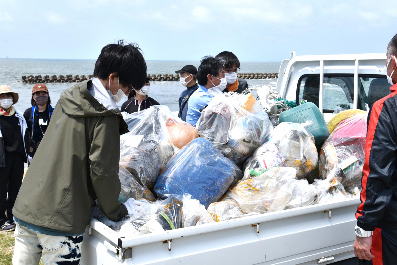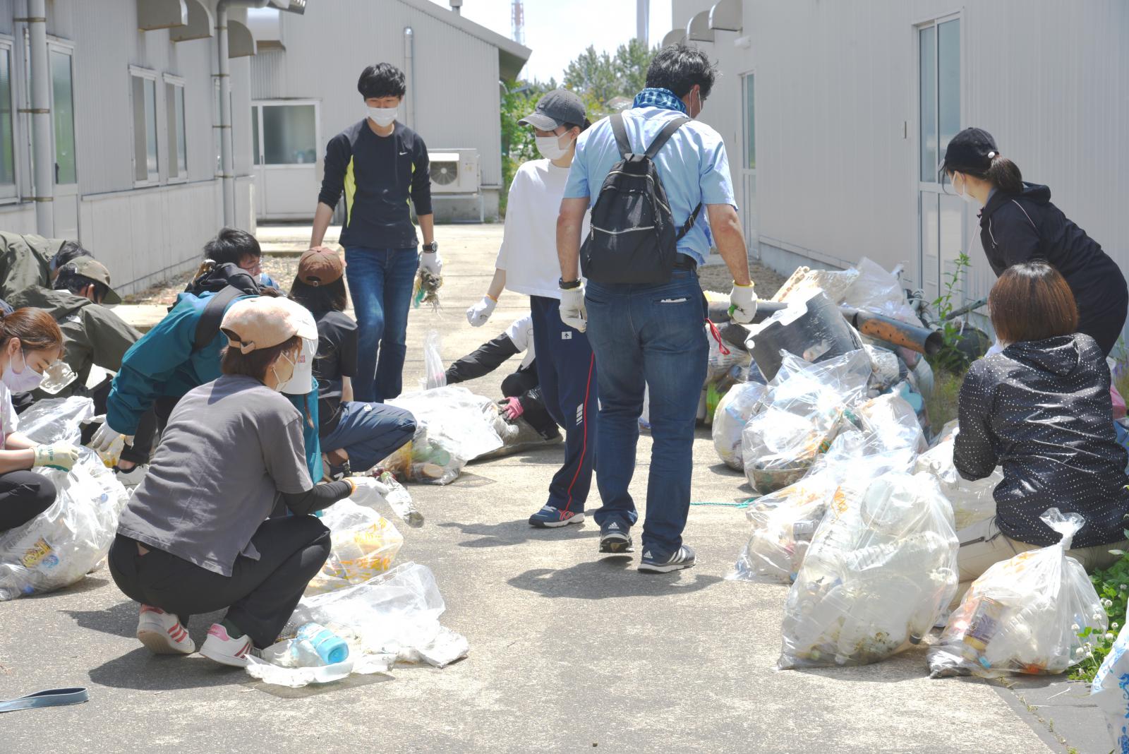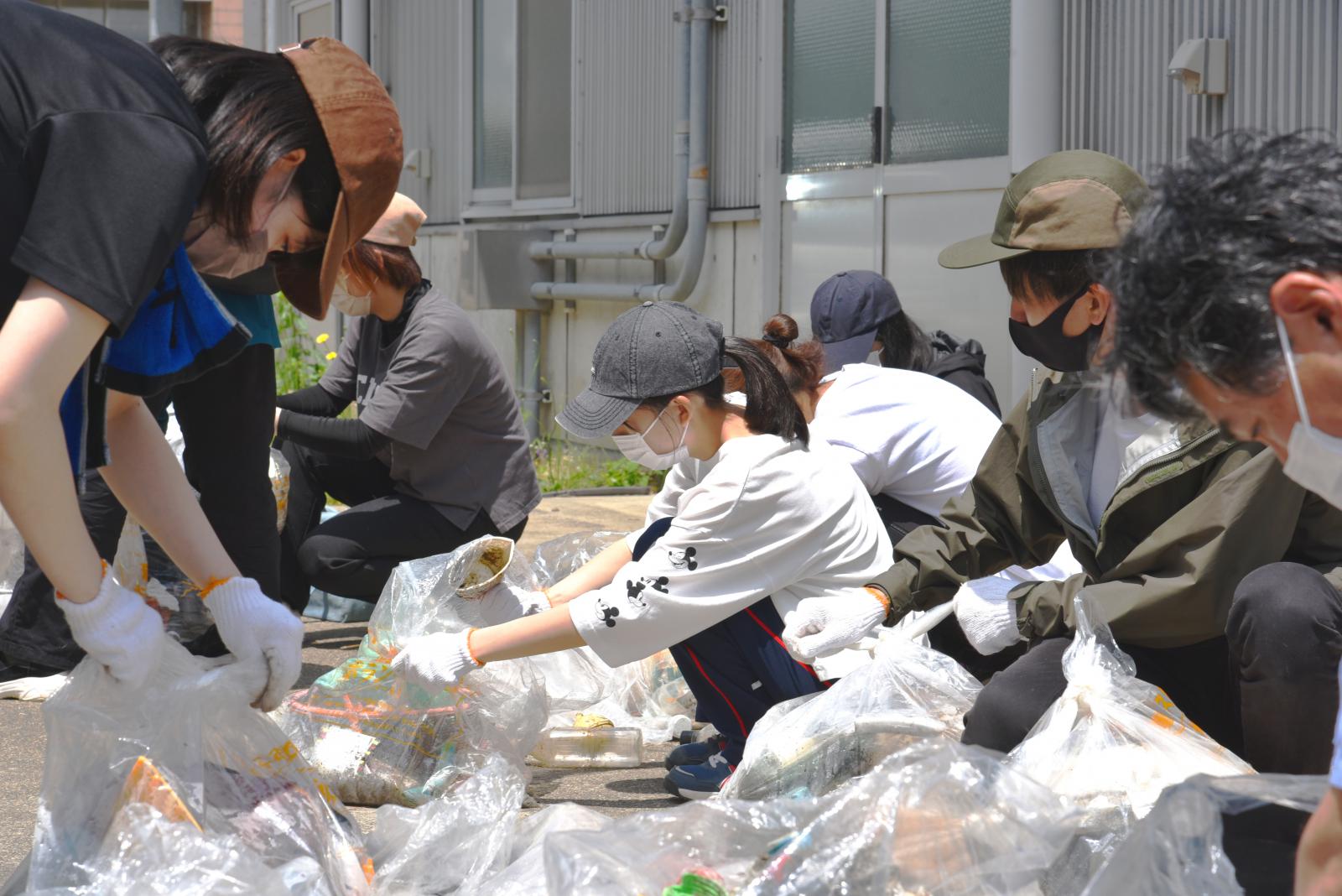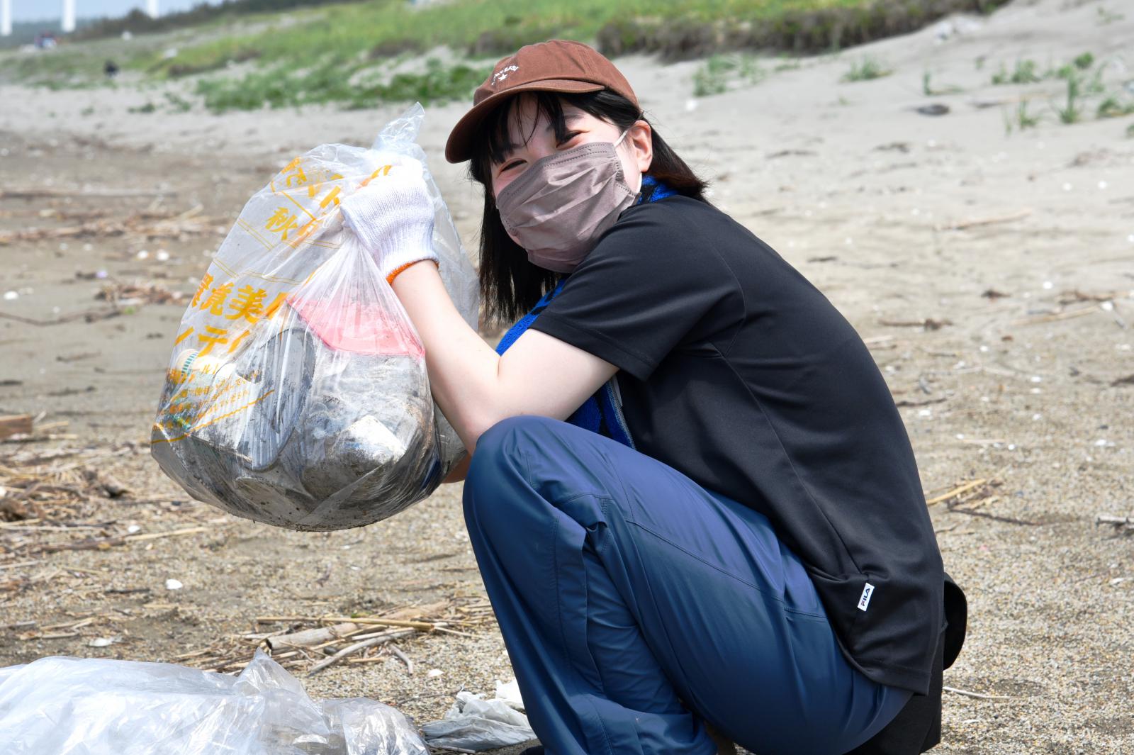 海岸ゴミの分別を行う小田垣さん