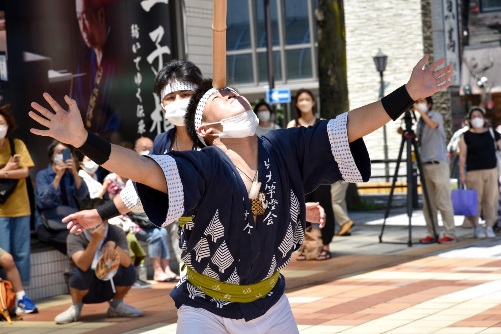 県大竿燈会メンバーは、竿燈ができる喜びと想いを全身にみなぎらせ魂のこもった演技を行い、たくさんのお客様から温かいご声援をいただきました。この場を借りてお礼申し上げます。