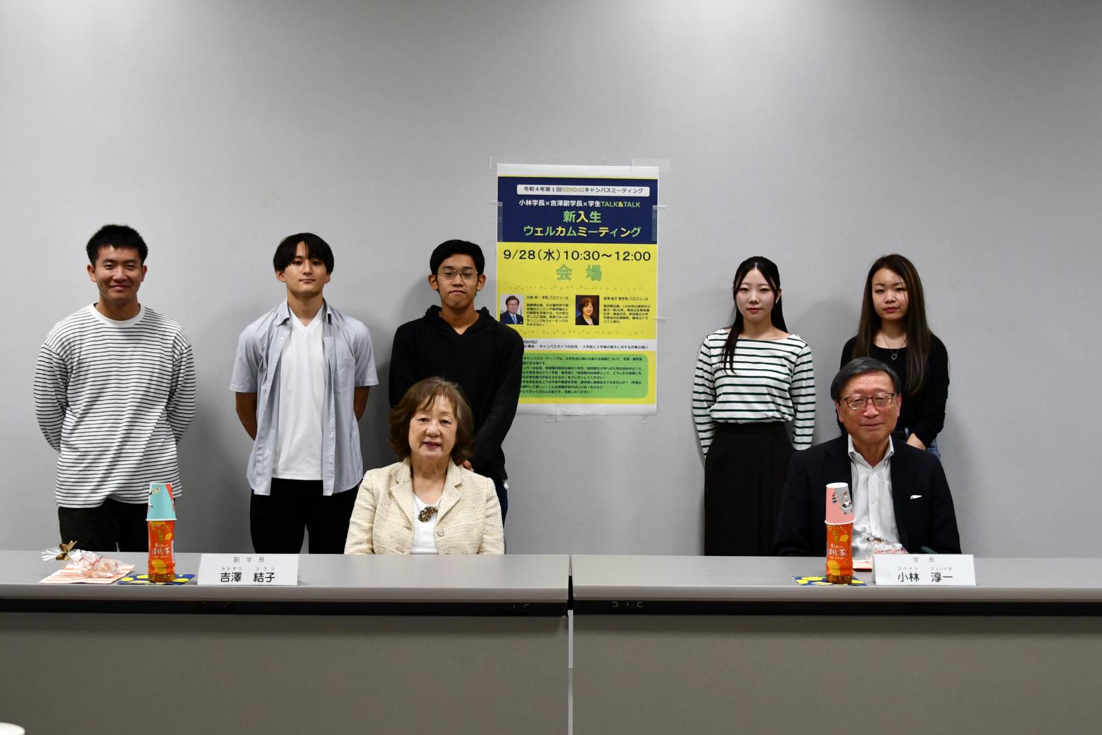 9月28日(水)、本荘キャンパスで、県大キャンパスミーティングが行われ、システム科学技術学部の1年生5名と小林 淳一 学長・吉澤 結子 副学長が懇談しました。今回は、『新入生ウェルカムミーティング』をテーマに、本学へ進学したきっかけ、入学後の印象や、これから学生生活でやってみたいなどについて、学長、副学長と語ってもらいました。