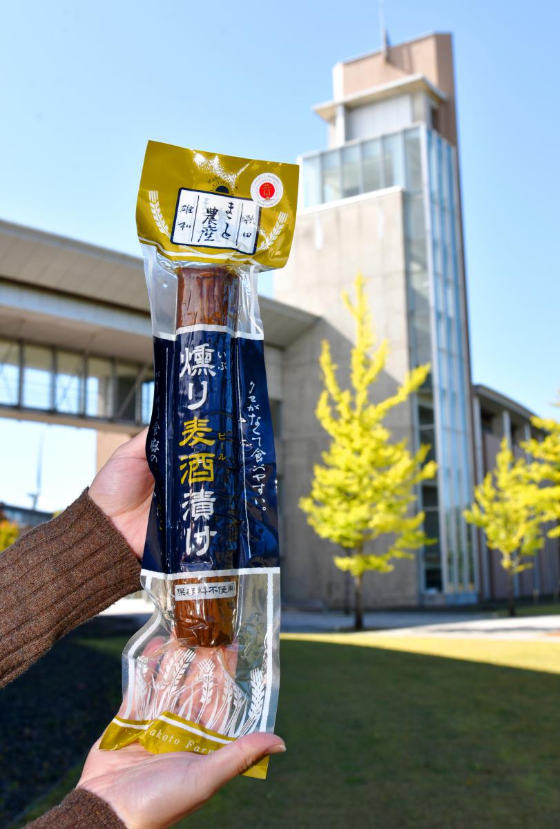 まこと農産が今回出展する商品は、秋田市雄和種沢地区の広大な自社農場で栽培した、大根を主原料とする秋田の燻製文化の象徴である「いぶりがっこ」です。良質な大根を1本ずつ手作業で収穫し、独自の「ビール漬け製法」により、クセがなく後味がさっぱりしていて甘さは控え目です。また、添加物や保存料も一切使用しておらず、女性や子ども、初めて「いぶりがっこ」を食べる人にも食べやすいのが特徴です。