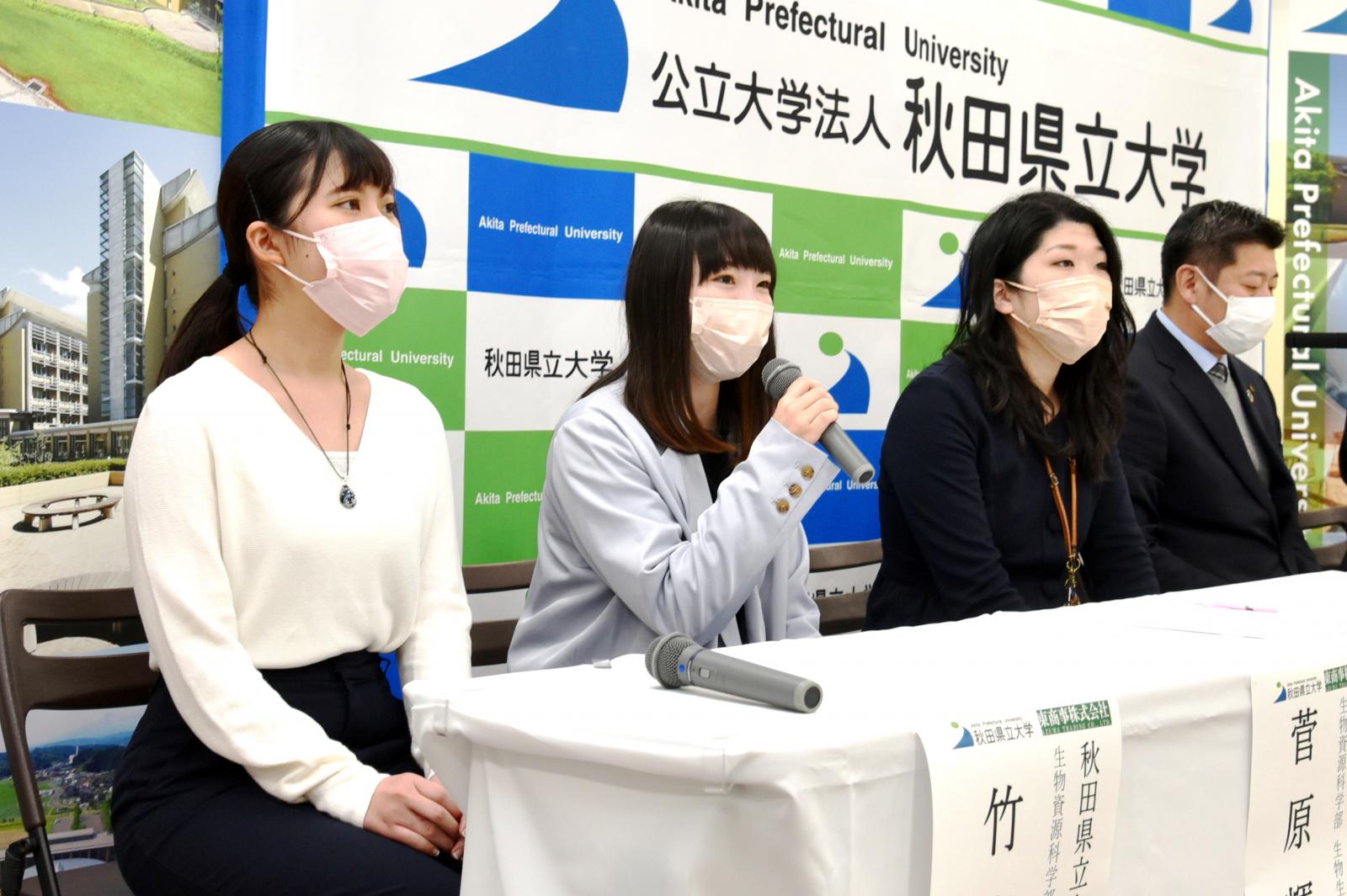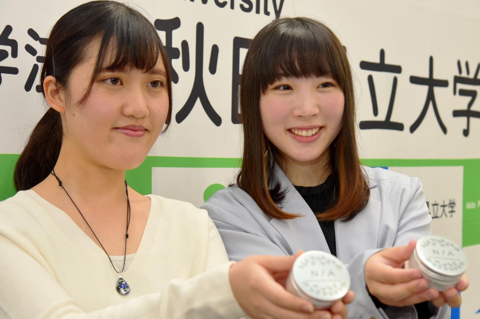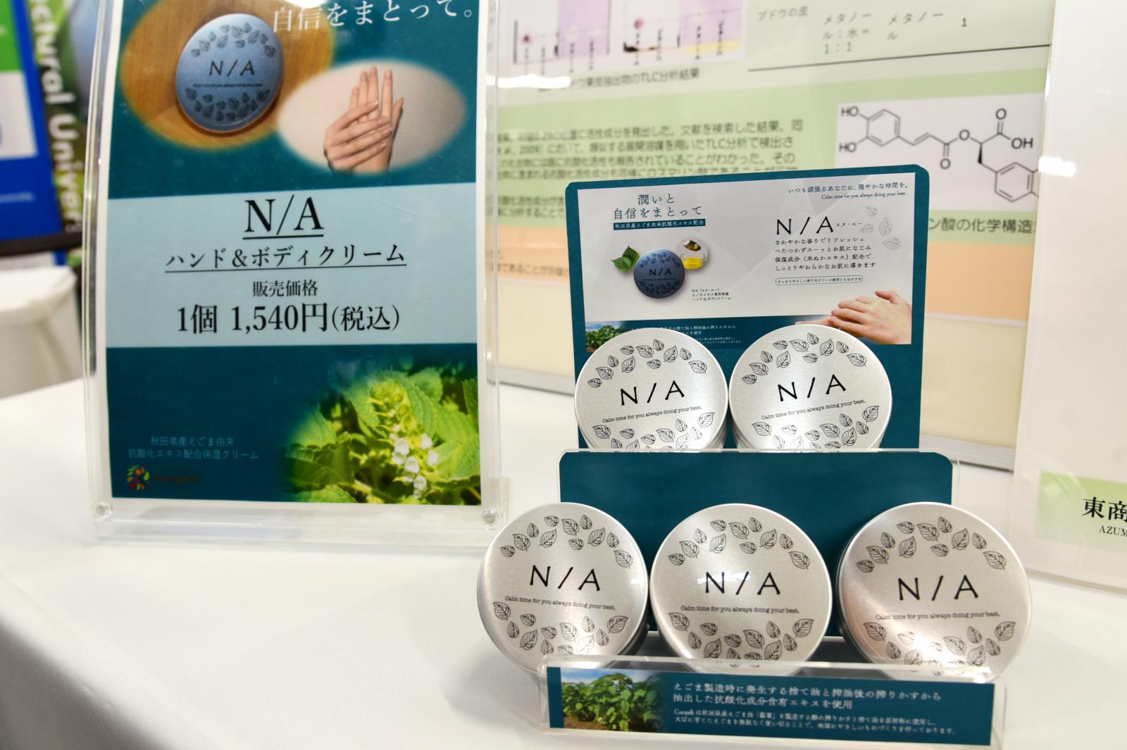 生物資源科学部生物生産科学科の 川上 寛子助教(植物資源創成システム研究室 [専門:植物工学])が指導した学生自主研究および卒業研究の成果と、自社ファームでエゴマの栽培や加工を手掛ける東商事㈱等との共同プロジェクトにより、ハンド&ボディクリーム『N/A(エヌエー)』が完成し、12月20日(火)、秋田県庁でお披露目されました。エゴマはシソ科に属する植物で、種子から油を搾油されて利用されるほか、一部地域で葉も食用に用いられています。東商事㈱はエゴマから「エゴマ油」を生産した後に大量に廃棄せざるを得ない搾かすの活用方法について検討していました。