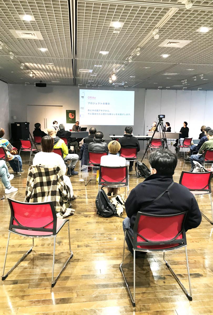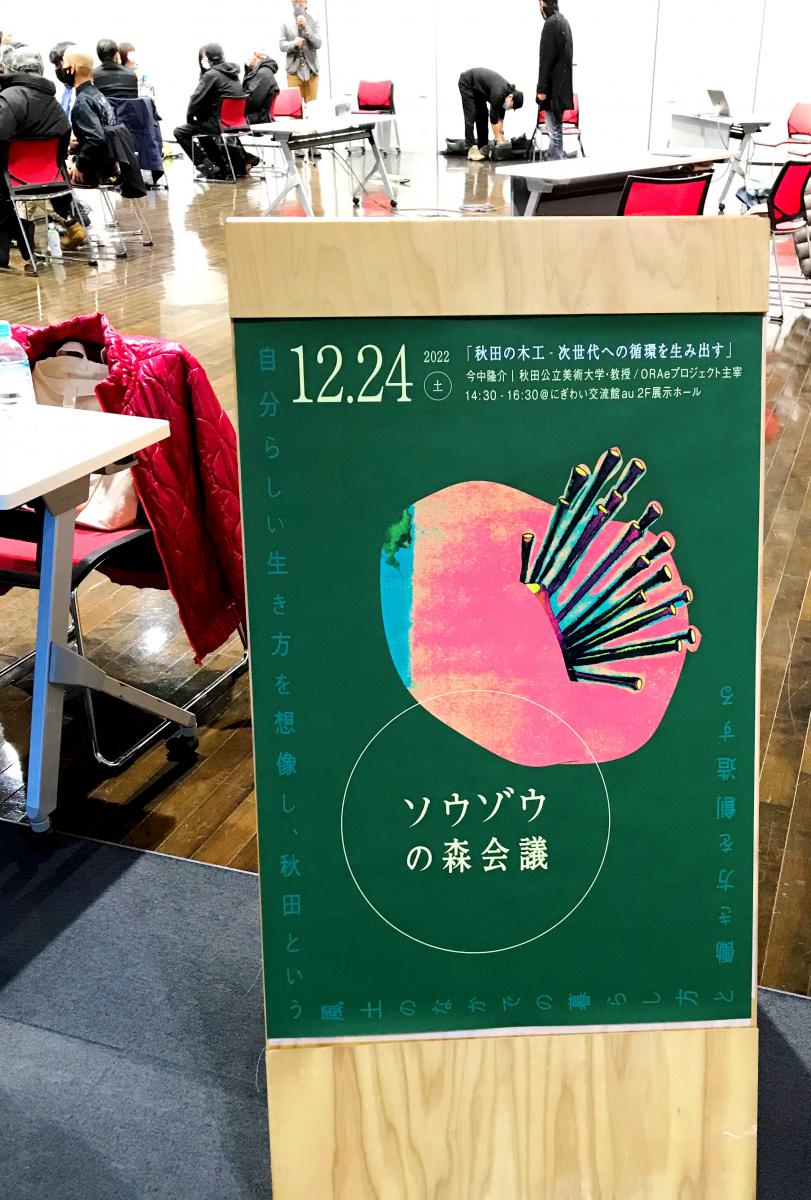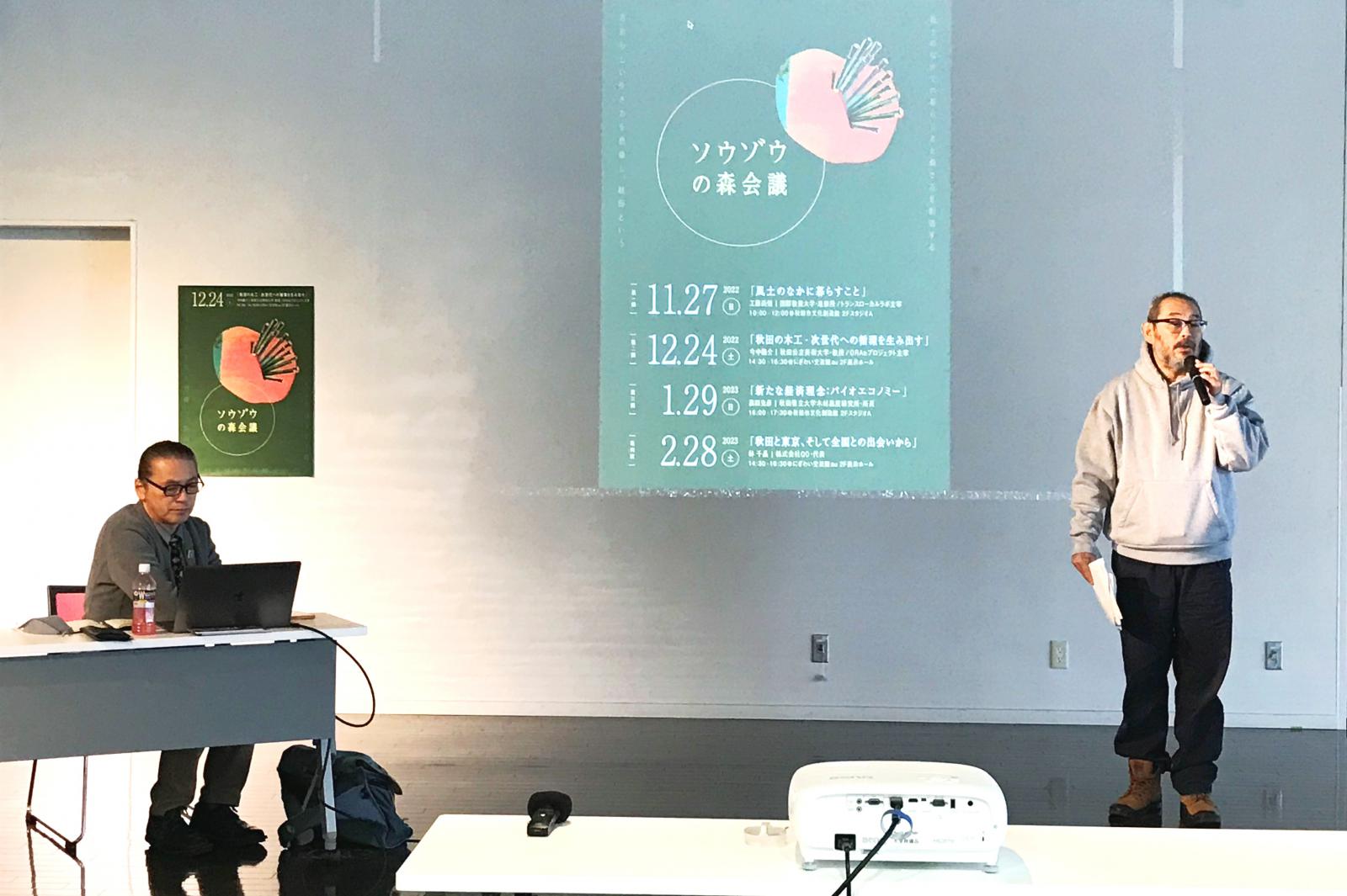 本学木材高度加工研究所の高田 克彦 教授・所長がプロジェクトリーダーを務める、秋田県立大学、国際教養大学及び秋田公立美術大学の連携プロジェクト『技術x教養xデザインで拓く森林資源活用による次世代に向けた価値創造共創拠点』の一環として、12月24日(土)、にぎわい交流館AUを会場に、「第2回ソウゾウの森会議」が開催されました。「ソウゾウ の森会議」は自分らしい生き方を想像し、秋田という風土のなかで暮らし方と働き方を創造する人々が集う場で、秋田という固有の土地に暮らしながら、世界のどこに持っていっても普遍的に通じる、意味性をもった仕事を生み出す人々が集う”森”のような場をつくることを目的に、100人の起業家精神を持った人々の生態系をつくり、そこから次の100人が自然発生するような仕掛けづくりを目指しています。