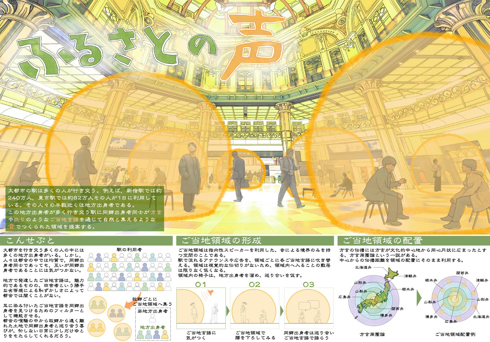 みせコンペという全国規模のコンペで賞を頂けたこと、光栄に思います。方言や訛りといった音として存在することで意味があるものによって空間をデザインすることに苦労しましたが、ここで得られたことを活かして今後も精進していきたいと思います。