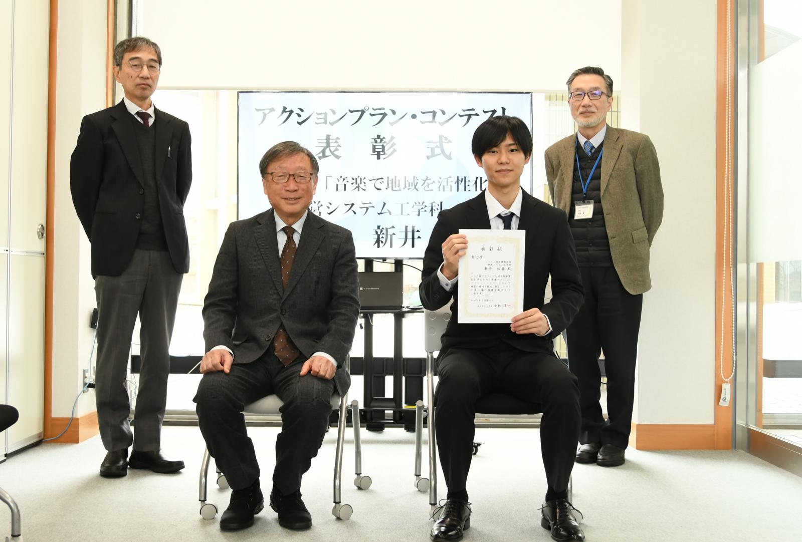 1月18日(秋田キャンパス)、2月10日(本荘キャンパス)に令和4年度アクションプラン・コンテストの表彰式を行いました。本コンテストは、開学20周年記念募金を原資に創設した「ふるさと元気創成基金」の事業の一つである「アクティブ人材奨励事業」により、ふるさと(秋田県や出身地域)の振興に意欲とビジョンを持った学生を応援するため、学部3年生を対象に実施したものです。