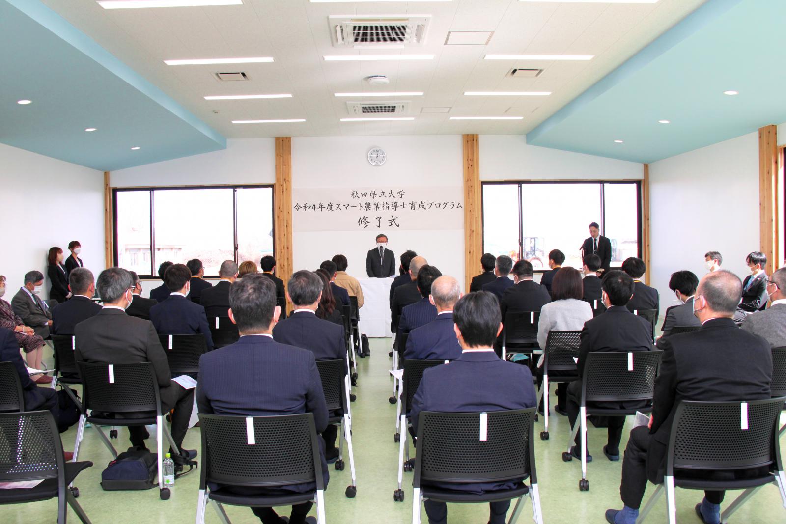 小林学長は、「スマート農業の技術が導入されることで、農産物の品質や収量の向上に繋がることが期待される。スマート農業指導士として、新たな技術を生産現場に届ける橋渡し的な役割を果たしてほしい」と挨拶しました。