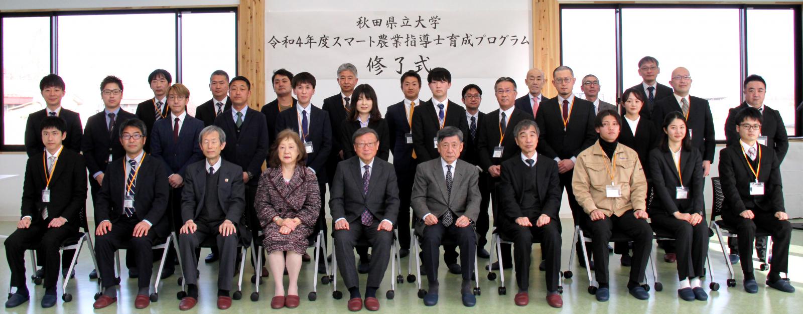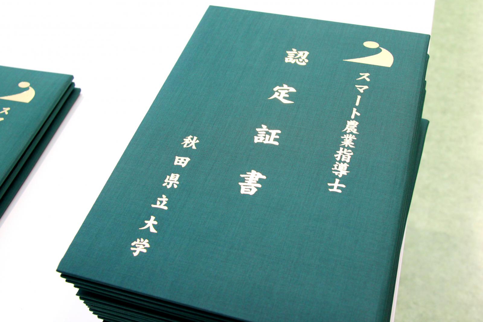 スマート農業技術の普及、指導に貢献できる人材の養成を目的に、今年度から開講した社会人を対象とした教育プログラム、「スマート農業指導士育成プログラム」の全課程が修了し、3月14日(火)、アグリイノベーション教育研究センター 研究・管理棟において、修了式を開催しました。34科目73時間の座学・演習を修了し、スマート農業において必要とされる新たな知識・技術・技能を習得した1期生22名に対し、小林淳一学長より、「スマート農業指導士認定証書」が授与されました。