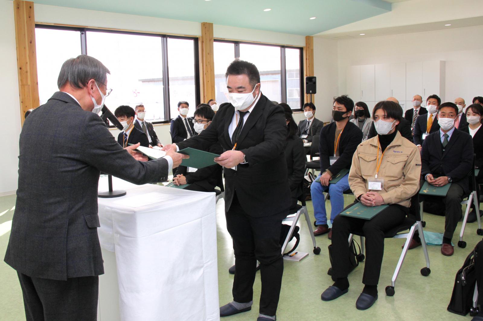 修了生は、「農家からドローンや食味・収量コンバインなどスマート農業技術を導入できないかという問い合わせが増えている。習得した知識・技術をしっかり現場に還元したい。」、「栽培管理や経営管理などのデータ活用から少しずつ農業の現場にスマート農業を導入し、農家の経営改善に繋げていきたい。」と抱負を語りました。