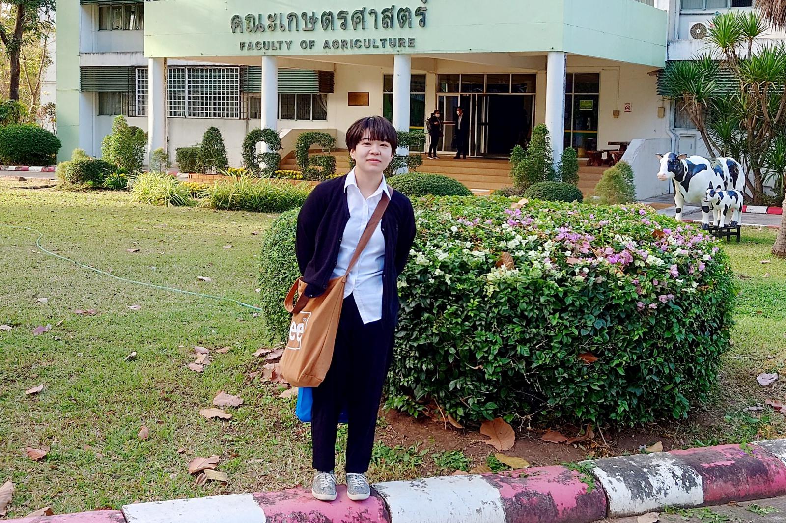 秋田県、日本のみならず、世界の多くの国々で、農村地域の少子高齢化が深刻化し、これまで集落やコミュニティで維持してきた集落活動が継続できないなどの問題点が指摘されています。大学院・生物資源科学研究科博士前期課程1年の鷲尾 環さん(地域計画学研究室)は、農村計画学の観点から研究を進めており、このような集落の活動を、1つの集落・コミュニティとしてではなく、複数の集落・コミュニティが連携・協力することで継続していく方法を模索しています。1月には研究活動の一環として、同研究室・生物環境科学科の川﨑 訓昭 助教[専門:組織経営学]が展開する研究チームの調査のためタイ王国を訪問、コンケーン大学で開催された国際シンポジウム「Sustainable development path of rural are in Asia」での成果報告や、コンケーン近郊のドンデーン村で、村長や農家等へのヒアリング調査を行いました。