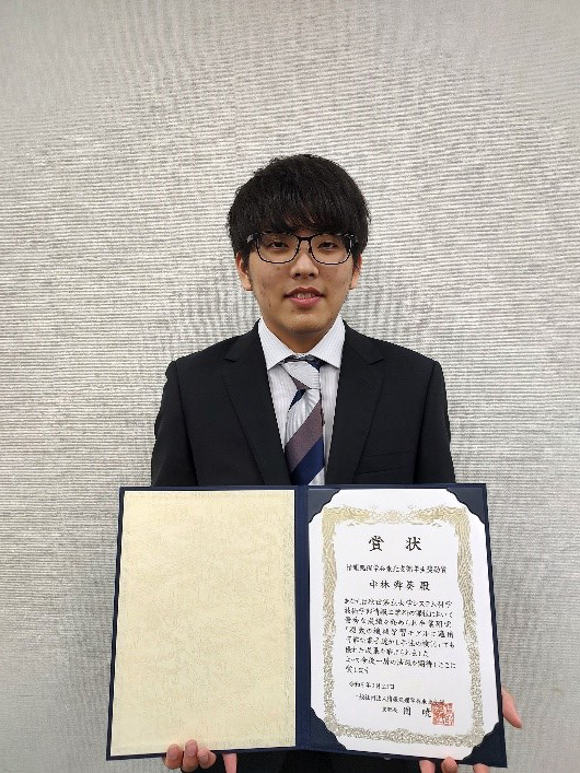 本学学生が情報処理学会東北支部学生奨励賞を受賞しました -情報工学科- システム科学技術学部情報工学科4年生の中林 舜葵 さんが、令和4年度情報処理学会東北支部学生奨励賞を受賞しました。 本表彰は東北地方の情報処理分野を教える主要大学と主要高専の卒業生の成績優秀者に対し、情報処理分野を学ぶ東北地区の学生が、より一層、情報処理分野の勉学に勤しむように奨励するものです。中林さんの今後の活躍が期待されます。 受賞された中林舜葵さん