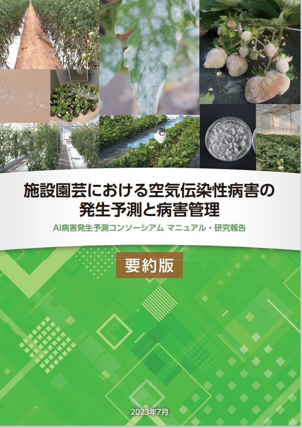 農作物を病気の害から守るために総合防除の実践が求められています。この実践にあたっては、病気の発生を予測しこれを踏まえた管理を行うことによってより合理的に被害を回避することが期待されます。本書では、施設園芸作物の主要病害について、AI(人工知能)を用いた発病予測に基づく管理技術の確立を目指した研究成果の一端をご紹介します。